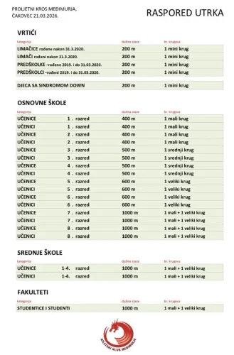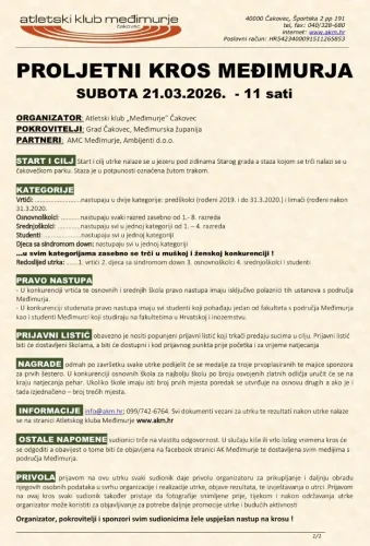 Nadolazeća subota, 21. ožujka, rezervirana je za jednu od najdugovječnijih i najmasovnijih sportskih manifestacija u našem kraju. S početkom u 11:00 sati, održat će se 39. Proljetni kros Međimurja, koji i ove godine okuplja polaznike vrtića, učenike osnovnih i srednjih škola te studente.