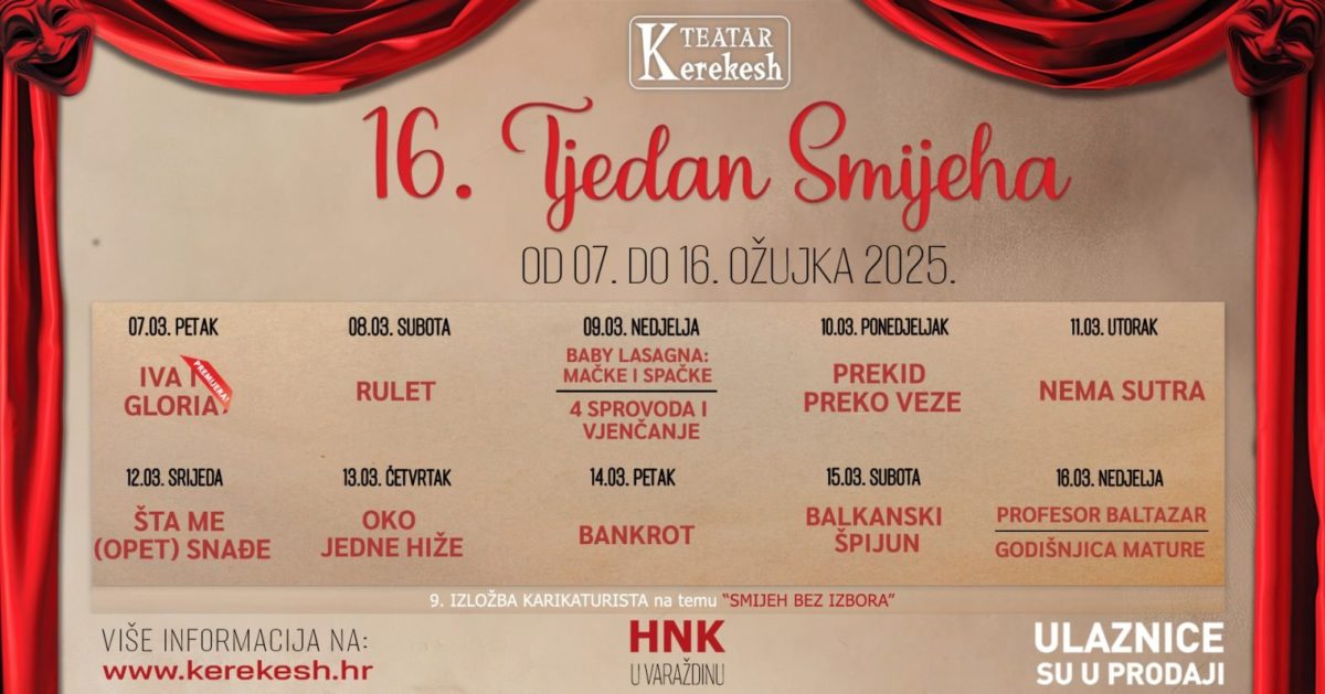 Međunarodni Tjedan smijeha Kerekesh Teatra završio je u nedjelju, izvedeno je ukupno 87 predstava u sedam hrvatskih županija i Gradu Zagrebu, a nagradu 'Najjači smehek' osvojila je predstava 'Prekid preko veze' Kazališta Moruzgva. Predstave na 16....