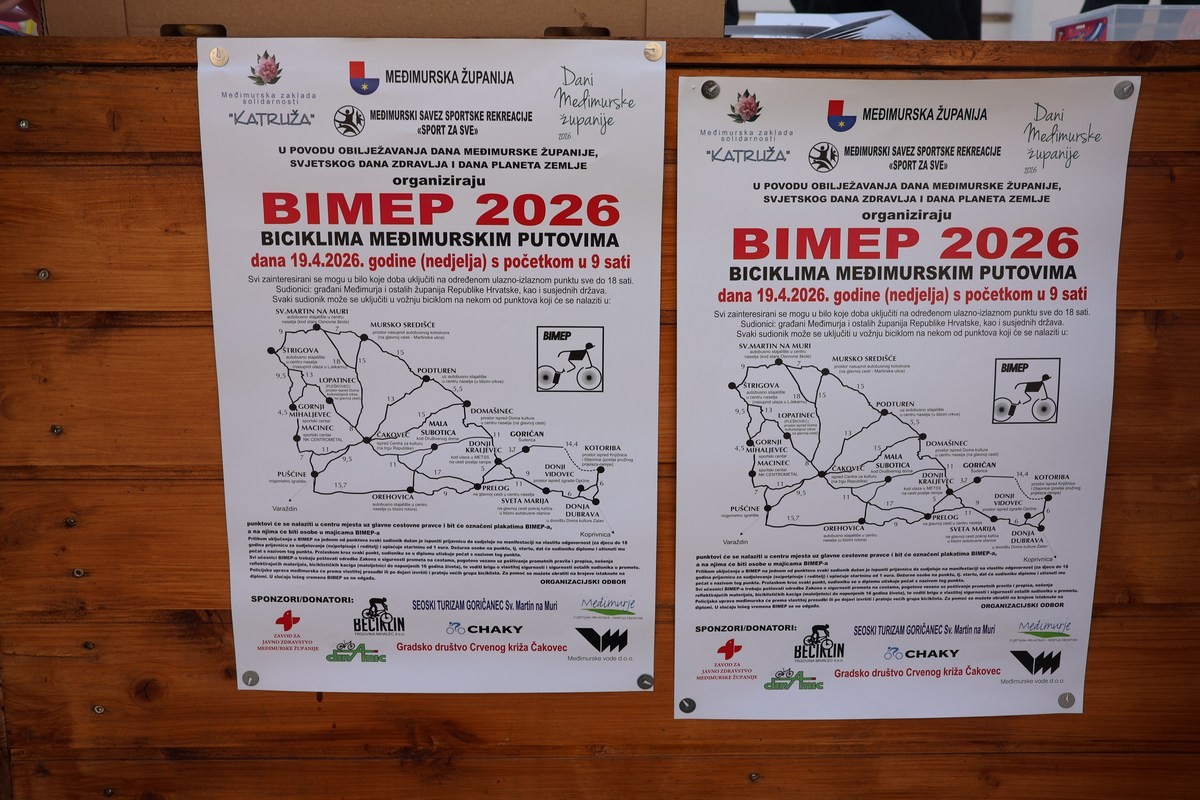 Međimurci i Međimurke su i protekle nedjelje još jednom potvrdili svoju neraskidivu vezu s aktivnim načinom života i boravkom u prirodi. Tradicionalna biciklijada BIMEP 2026 uspješno je održana uz impresivno sudjelovanje više od 2200 rekreativaca svih generacija, što ovu manifestaciju svrstava među najmasovnije sportske događaje u regiji. Uz idealne vremenske uvjete i sunčano vrijeme, sudionici su tijekom cijeloga dana biciklirali brojnim rutama diljem Međimurja, birajući tempo i dionice koje najbolje odgovaraju njihovim fizičkim mogućnostima i željama. Cijeli događaj protekao je u prepoznatljivo opuštenoj i prijateljskoj atmosferi, bez ikakvog natjecateljskog pritiska, čime je fokus ostao isključivo na promociji zdravlja, rekreaciji i druženju.