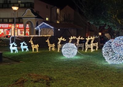 Ulice su obasjane božićnim lampicama koje stvaraju toplinu i reflektiraju duh Božića. Gradski park krasi okićena božićna jelka, adventski vijenac, štalica i saonice Djeda Božićnjaka s jelenima. Titrajuće lampice oživljavaju svjetlost i veselje na svakom koraku. Šetnica svete Barbare i njezin drvored također su ukrašeni lampicama koje već nekoliko godina uveseljavaju šetače i posjetitelje.