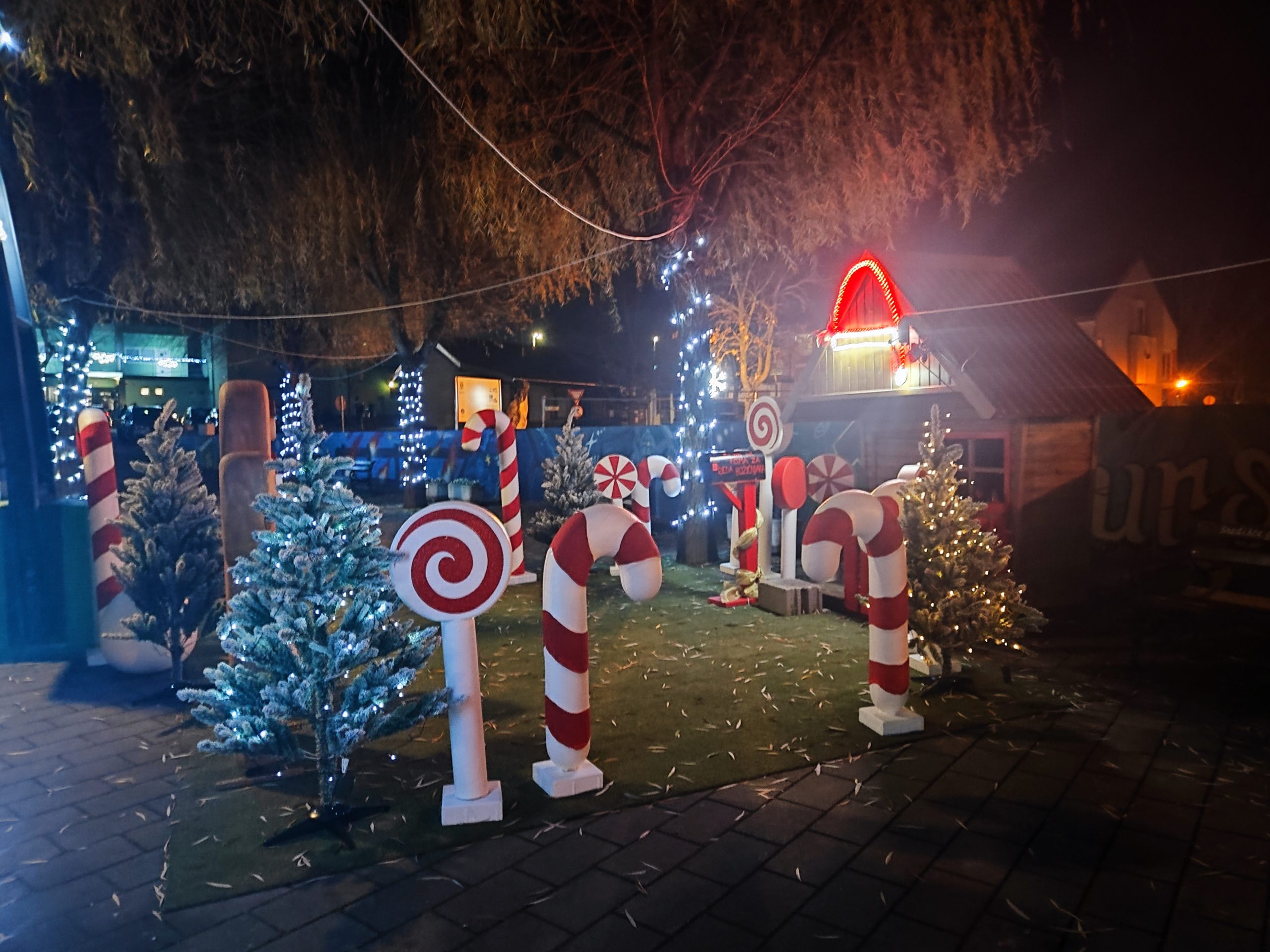 Kućica Djeda Božićnjaka i sandučić za pisma poznati od prošle godine, ove godine obogaćeni su novim detaljima. Oko kućice nalaze se razni ukrasi, uključujući okrugle lizalice i bombonijera lizalice kao i šarenog medenjaka s kojim se mališani rado fotografiraju.