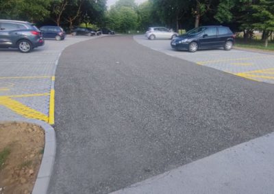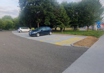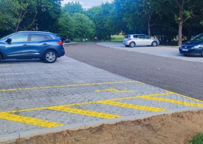 Ključna novina su travnate ploče kojima su popločena parkirna mjesta. One ne samo da učvršćuju podlogu i sprječavaju stvaranje rupa i blata, već omogućuju rast trave kroz otvore opločnika. Time se postiže prirodan izgled uređene površine, savršeno se uklapajući u okoliš i doprinoseći zelenijem imidžu grada.
