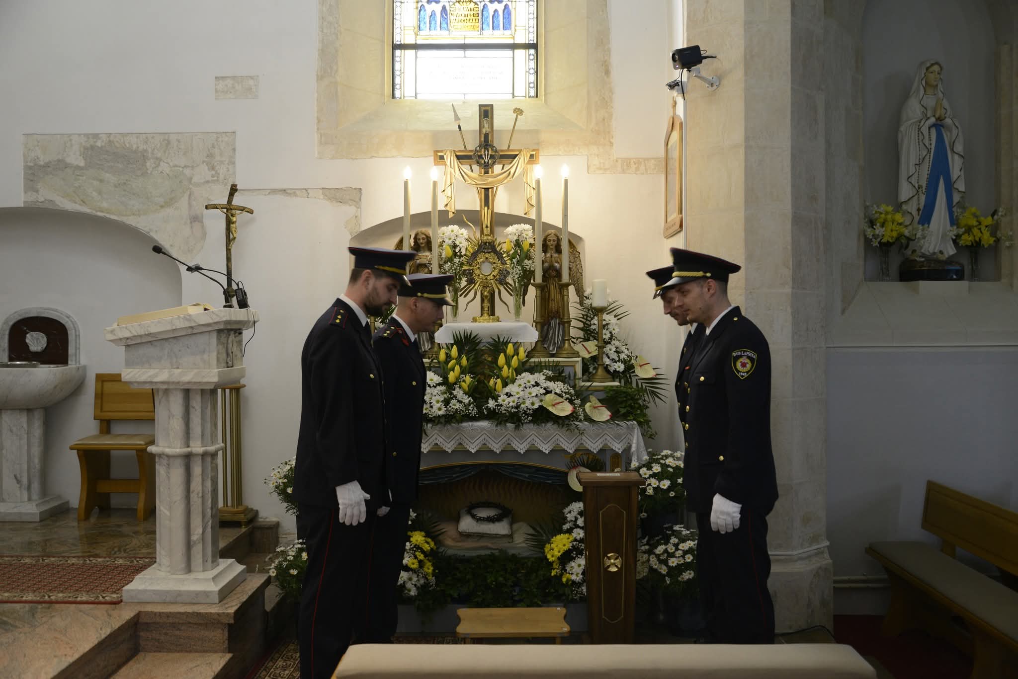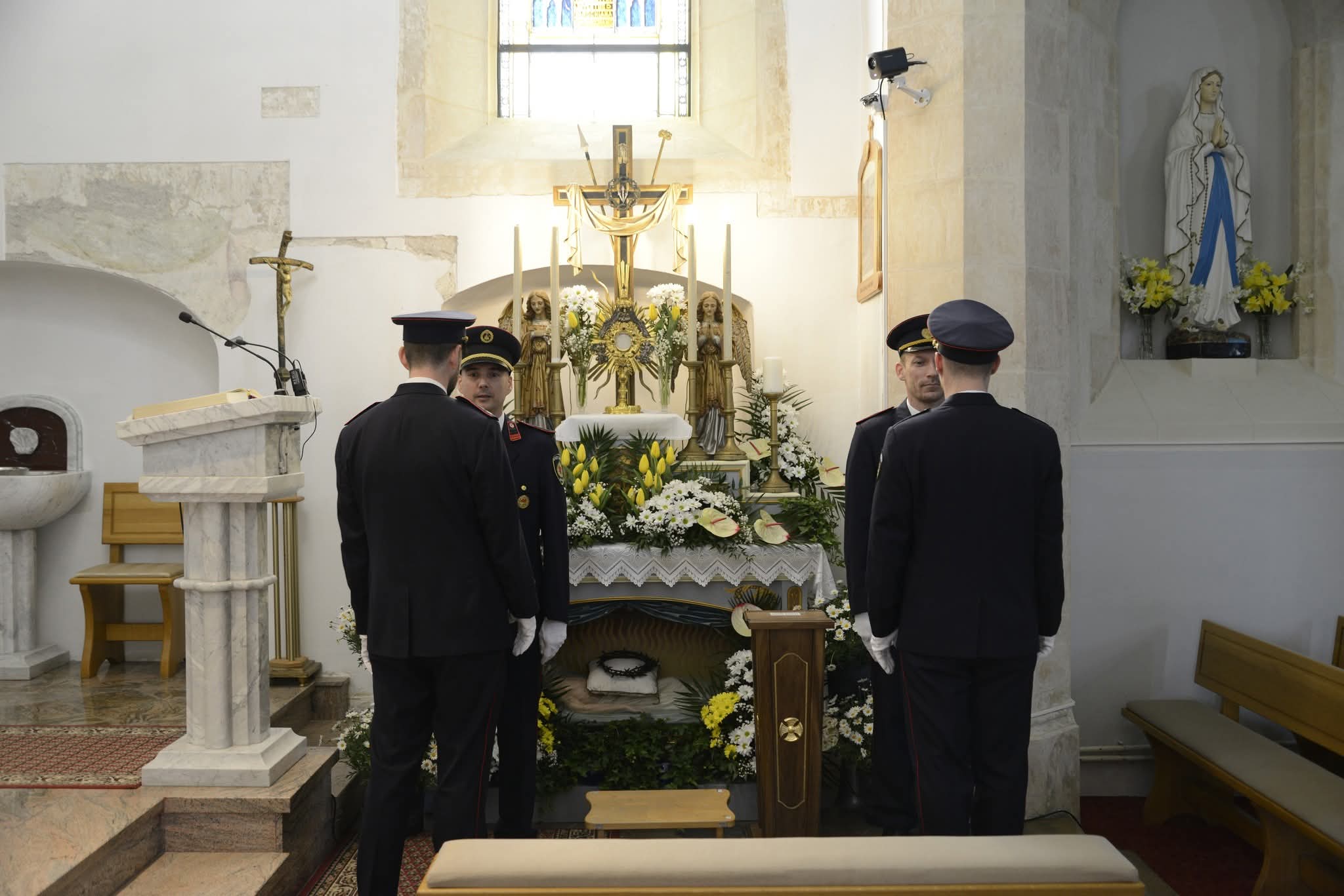 Ovaj hvale vrijedan običaj simbolizira biblijsko bdjenje nad Kristovim grobom, a vatrogasci ga obavljaju u svojim svečanim odorama, stojeći nepomično i dostojanstveno. Izmjene straža, koje se odvijaju u pravilnim razmacima tijekom cijelog dana, privlače pažnju brojnih vjernika koji dolaze na osobnu molitvu i poklon grobu.