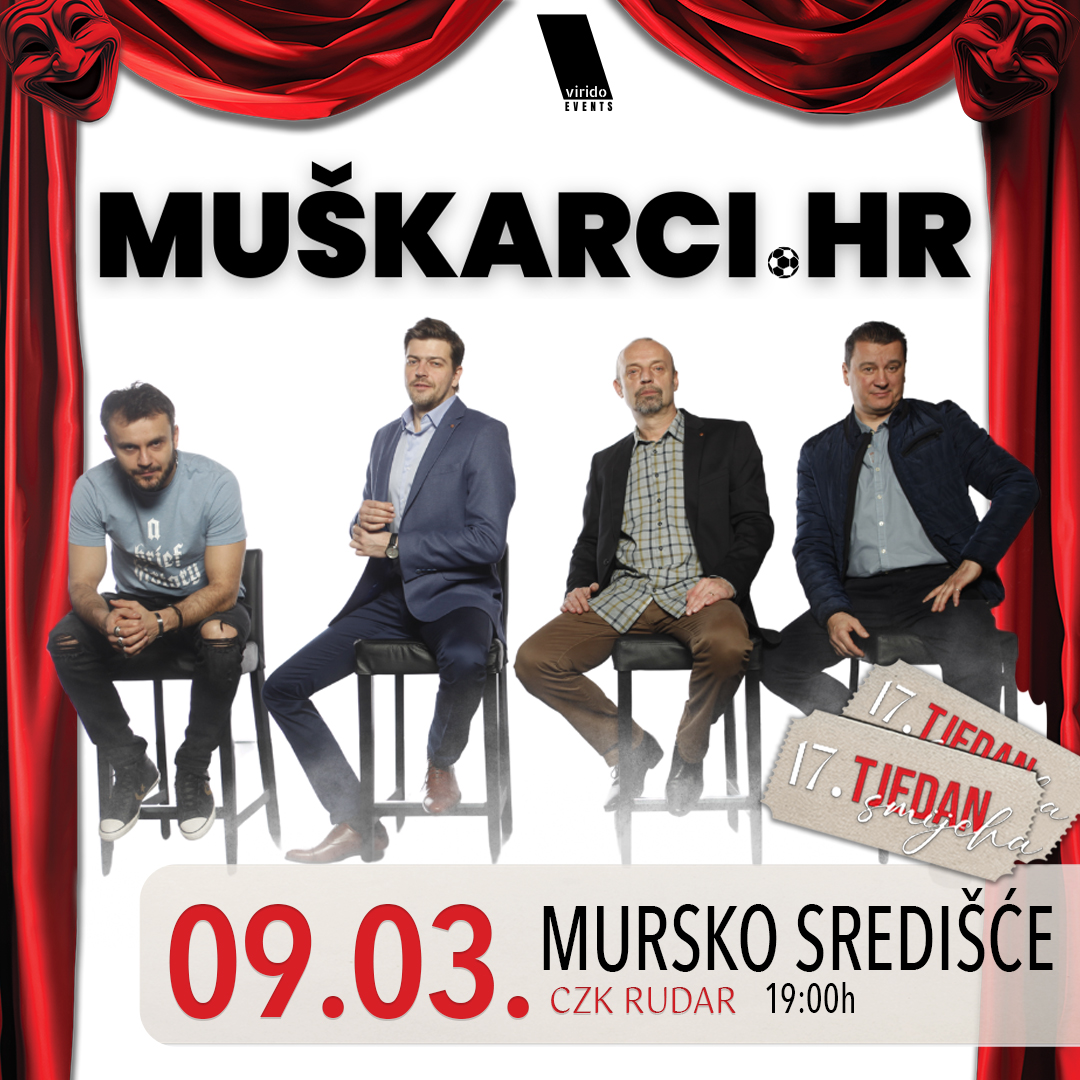 U ponedjeljak, 9. ožujka 2026. godine u 19 sati, dvorana Centra za kulturu „Rudar“ u Murskom Središću postat će središte vrhunske kazališne zabave. Samo dan nakon proslave Međunarodnog dana žena, na pozornicu stiže urnebesna komedija „Muškarci.hr“, koja obećava večer punu iskrenog smijeha i prepoznavanja svakodnevnih životnih situacija. Četiri poznata imena hrvatske glumačke scene bez zadrške progovaraju o odnosima, stereotipima i muškim kompleksima, nudeći publici jedinstven uvid u muški pogled na svijet koji se rijetko izgovara naglas.
