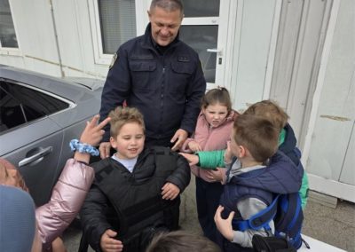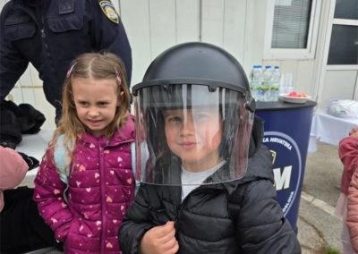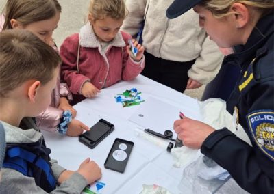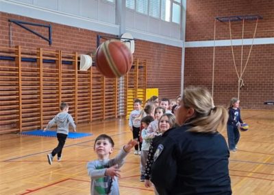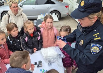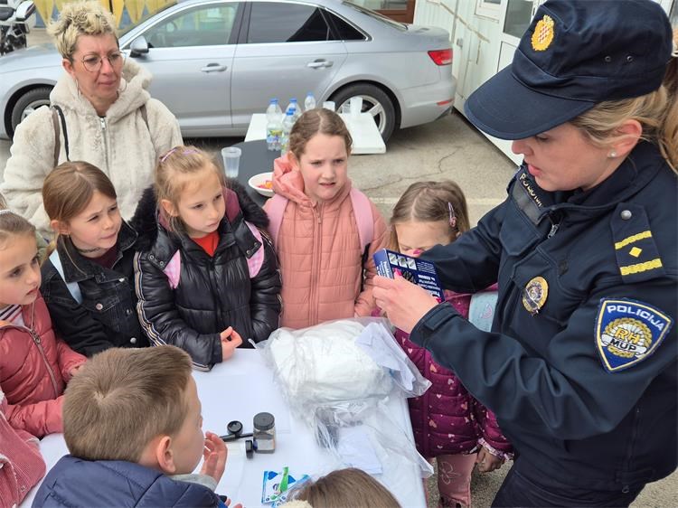 U sportskoj dvorani, djeci je policijska službenica Ureda načelnika objasnila je kako se uzimaju otisci prstiju i u koje svrhe te im za uspomenu podijelila šarene kartončiće s logotipom policije i njihovim otiscima prstića što ih je posebno razveselilo. Ujedno im je pokazan kako se provodi dio policijskog kondicijskog treninga.