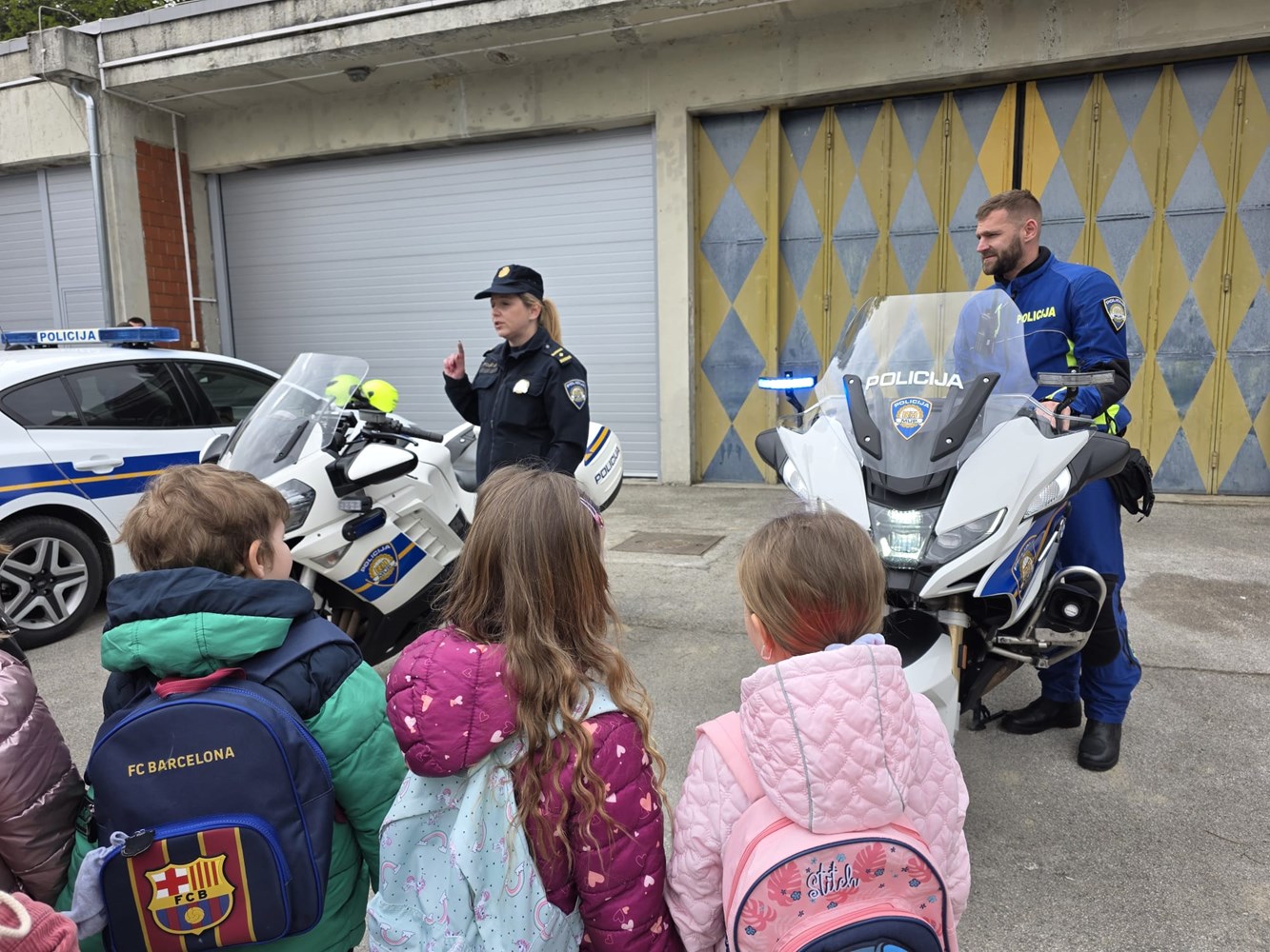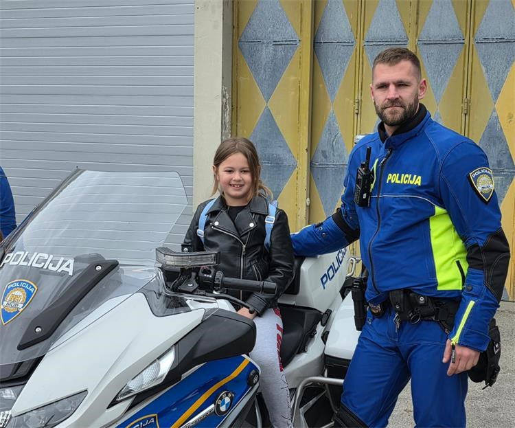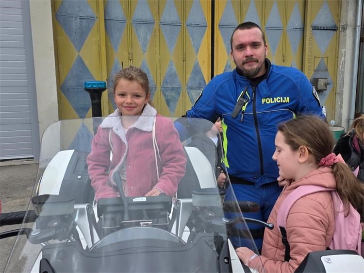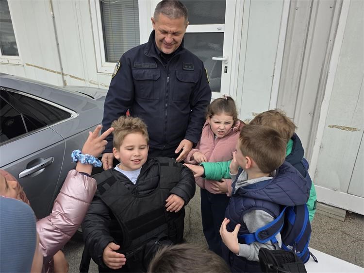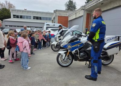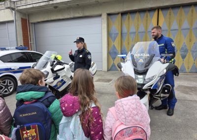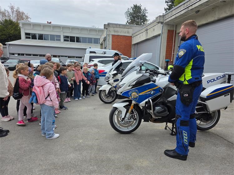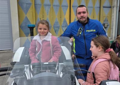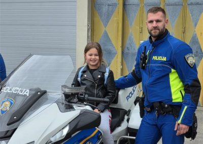 U nastavku posjeta djeca su upoznata s radom prometne policije te im je pokazan vozni park policije, motocikl i druga službena vozila koja policija koristi u izvršavanju svojih zadaća. Djeci je najveće veselje bilo sjesti na policijski motocikl te vidjeti upaljena rotacijska svjetla te čuti policijsku sirenu.