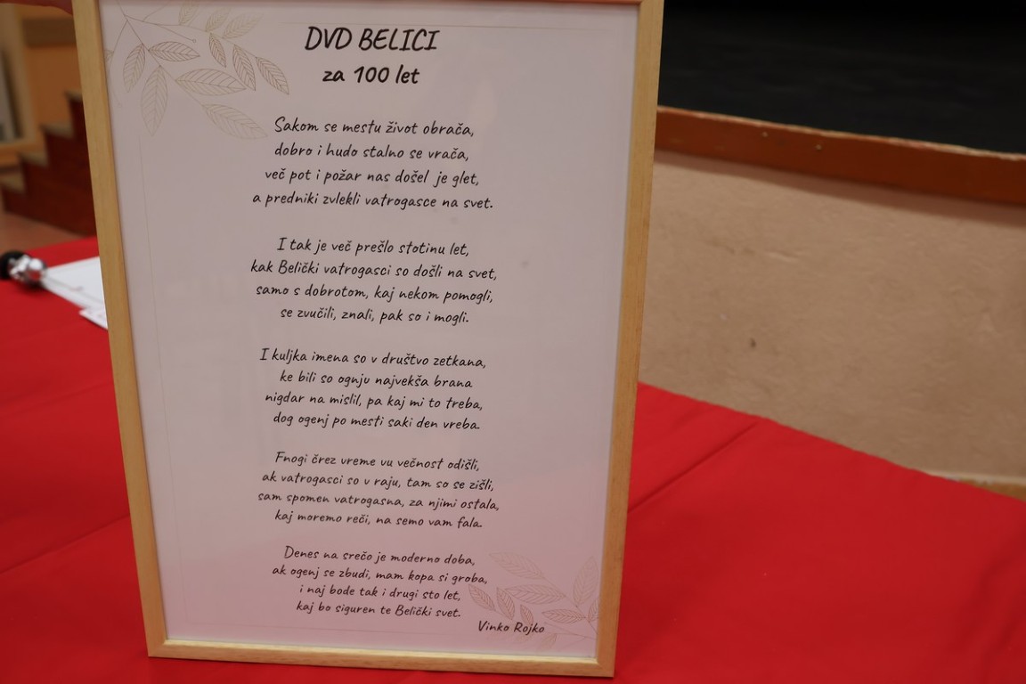 U Društvenom domu Belica, predsjednik društva Denis Makar istaknuo je ponos što je dio generacije koja slavi ovaj povijesni jubilej. Podsjetio je na daleku 1925. godinu kada je društvo osnovano, s Matom Cerkovićem kao prvim predsjednikom i Stjepanom Polgarom kao prvim zapovjednikom, čiji su trud i vizija postavili temelje za stoljeće službe.