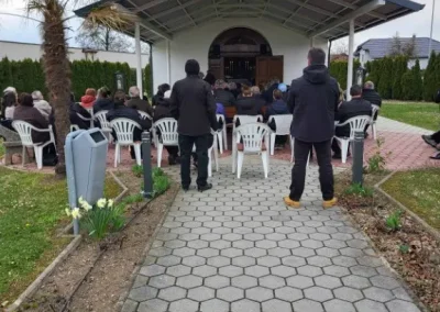 Jedan od najpotresnijih trenutaka križnog puta dogodio se na posljednjoj, 14. postaji u Podbrestu. Tamo je hodočasnike dočekala majka pokojnog Stjepana Jurića, mladog branitelja koji je sa samo 21 godinu položio život za Hrvatsku. Taj susret s majkom heroja, prožet dubokom tišinom i suzama zahvalnosti, postao je središnji simbol cijelog hodočašća. Duhovni hod zaključen je svečanom svetom misom u Schonstattskom svetištu u Maloj Subotici, koju je predvodio pater Christoph Horn, naglasivši važnost očuvanja kršćanskih i domoljubnih vrijednosti u današnjem vremenu.