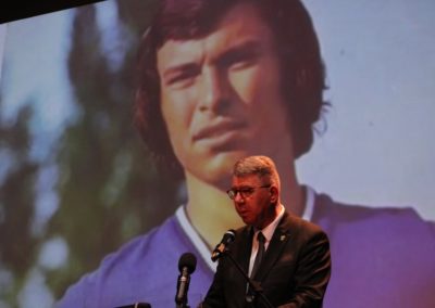 Zorislav Srebrić, ispred Hrvatskog nogometnog saveza, podsjetio je na povijesni značaj Srećka Bogdana za nacionalni identitet. Posebno je istaknuo trenutke iz devedesetih godina kada je Bogdan, unatoč klupskim preprekama, silno želio nastupiti u prvoj povijesnoj utakmici protiv SAD-a, što mu je kasnije uspjelo u susretu protiv Rumunjske. Srebrić je evocirao uspomene na Bogdanovu nevjerojatnu snagu duha, spomenuvši finalnu utakmicu Mediteranskih igara 1979. godine kada je Srećko, unatoč teškoj ozljedi, uspio zaustaviti francuske zvijezde poput Michela Platinija i odvesti svoju momčad do zlata.