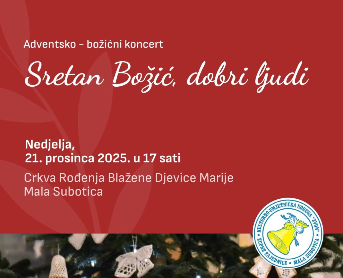 SRETAN BOŽIĆ, DOBRI LJUDI: KUU „Zvon“ poziva na tradicionalni božićni koncert u Maloj Subotici