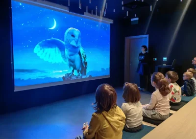 Avantura je započela u projekcijskoj dvorani simboličnog naziva „Noć“, gdje su mališani doslovno uronili u kraljevstvo mraka. Kukuvija, ptica prepoznatljiva po svom srcolikom licu i nevjerojatnim navigacijskim sposobnostima, danas je gotovo ugrožena gnjezdarica, zbog čega je njezino očuvanje od iznimne važnosti.
