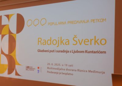 Na dan kada se obilježava sto godina od rođenja jednog od najznačajnijih hrvatskih skladatelja – Ljube Kuntarića, Čakovec je bio domaćin večeri ispunjene emocijama i sjećanjima. U sklopu programa Muzeja Međimurja Čakovec „Popularna Predavanja Petkom“, povodom obljetnice rođenja Ljube Kuntarića, održano je posebno gostovanje glazbene dive Radojke Šverko, čiji je glazbeni put isprepleten s legendarnim skladateljem, a čije su melodije vječno ostale u srcima svih ljubitelja dobre glazbe.