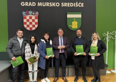 U subotu, 28. ožujka 2026. godine, u Gradskoj vijećnici Grada Mursko Središće, gradonačelnik Dražen Srpak potpisao je ugovore s mladim obiteljima koje su ostvarile pravo na gradske poticaje za uređenje nekretnina. Ovim činom nastavlja se sustavna podrška mladima do 40 godina starosti, kojima Grad pomaže u rješavanju stambenog pitanja kroz obnovu zapuštenih objekata ili uklanjanje ruševnih kuća radi gradnje novih domova.