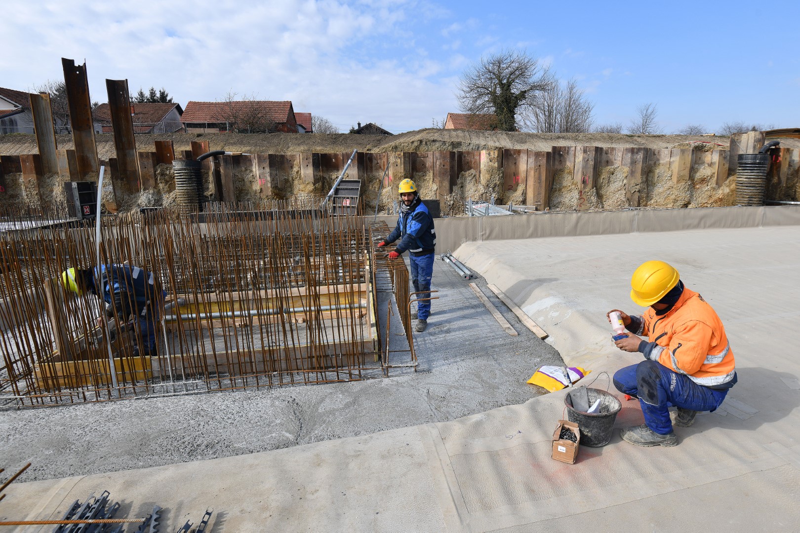 Trenutno se na gradilištu izvode temeljni građevinski radovi koji su ključni za stabilnost i dugovječnost objekta. Nakon postavljanja zaštitnih talpi, koje osiguravaju tlo i sprječavaju urušavanje, iskopani su zdenci za crpljenje podzemne vode. Ovi zahvati omogućili su sigurno daljnje izvođenje radova, a sada se betonira temeljna ploča – složen i precizan proces kojim se stvara čvrsta osnova za buduću zgradu. Istovremeno, provodi se postavljanje hidroizolacije, čime se osigurava zaštita objekta od vlage i vanjskih utjecaja, što će dugoročno pridonijeti kvaliteti i trajnosti Centra.