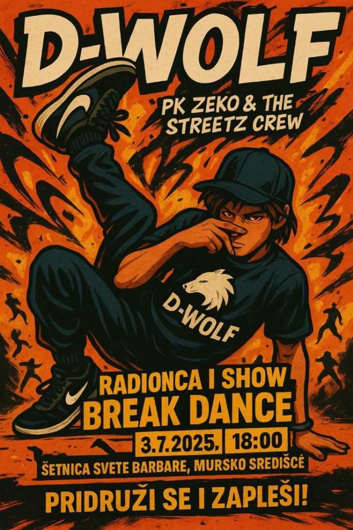 Vrhunac ovog ljetnog događanja bit će radionica Davida Pahora, koja će se održati u četvrtak, 3. srpnja 2025. u 18:00 sati. Ova posebna radionica organizira se u sklopu popularne manifestacije Ljeto uz Muru 2025. David Pahor poznat je po svom inovativnom i kreativnom pristupu plesu i glazbi, a ovoga puta povest će vas u svijet stvaranja, igre i kreativnog izražavanja uz show Break dance radionicu. Pridružite se i zaplešite u ritmu uličnih plesova!