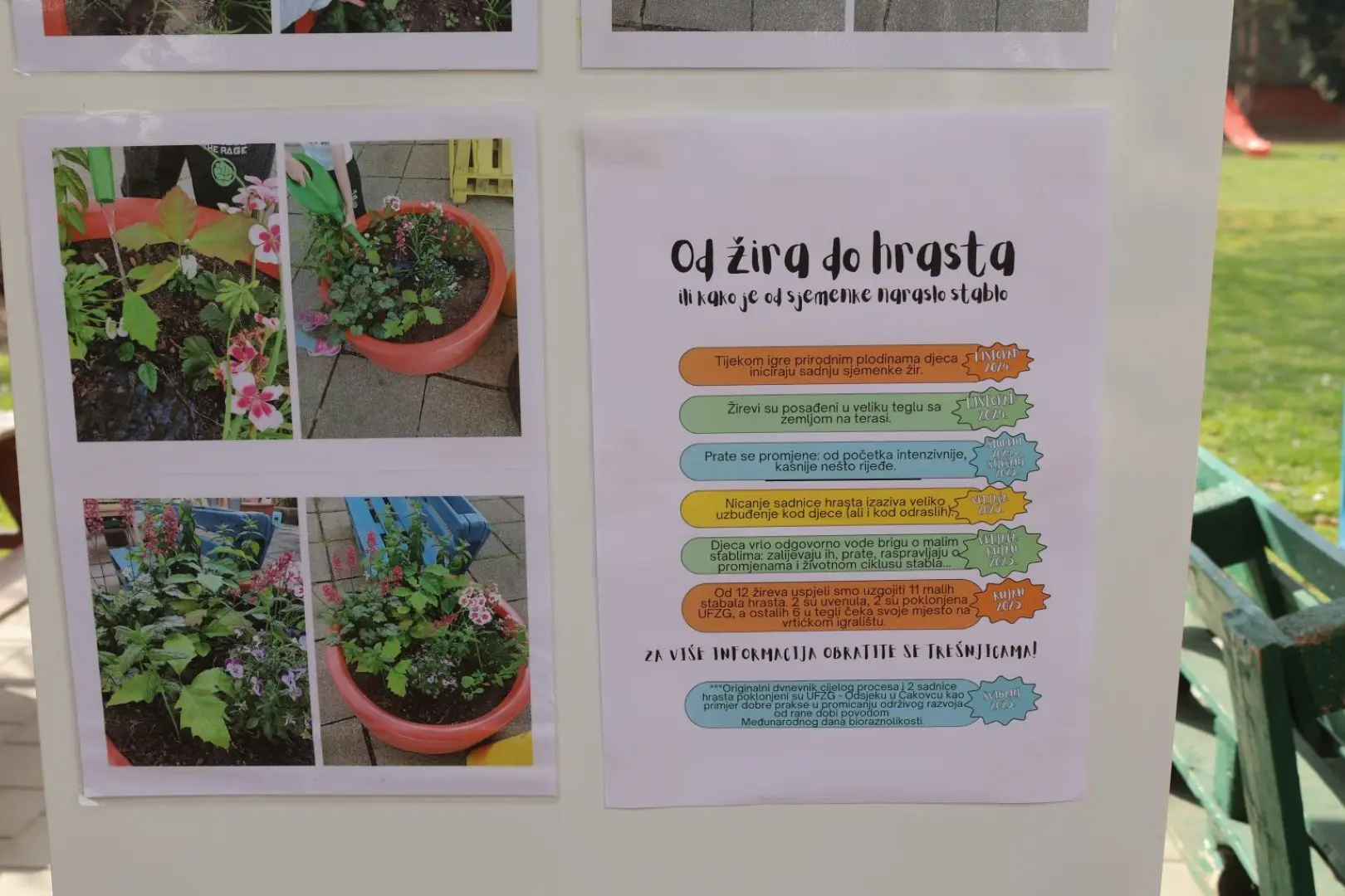 Projektom „Od sjemenke do sadnice“, djeca na ovaj način uče o prirodi i njenim ciklusima, važnosti drveća i šuma za eko sustav te brizi za okoliš u kojem žive. Izradili su i kalendar na kojem bilježe svoje aktivnosti. Uz pratnju odgojiteljica, uzgojili su nekoliko sadnica hrasta, a sve one trebale bi pronaći svoje mjesto u dvorištima naših vrtića. Podršku ovom projektu dala je i gradonačelnica Grada Čakovca Ljerka Cividini, naglasivši važnost poticanja dječje radoznalosti i učenja o važnosti očuvanja prirode.