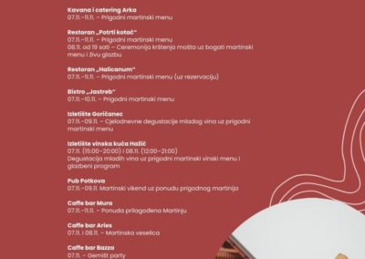 - Mlado vino: Degustacija mladog vina lokalnih vinara, ključnog dijela proslave Martinja.