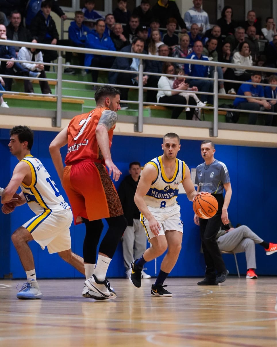 Međimurje je u utakmicu ušlo znatno oslabljeno: izvan stroja su bili Kuzmić, kapetan Mislav Kranjčec te od ranije Zaspan, dok je Šarić igrao unatoč ozljedi zgloba. Bez obzira na to, domaći su dominirali tri četvrtine, a na krilima raspoloženog Gašparića (17 poena) i borbenog Glumca (13 poena, 9 skokova), u zadnju dionicu ušli su s vodstvom 65:53. Ipak, skraćena rotacija u zadnjih deset minuta nije izdržala pritisak iskusnog Svobode i mladog Valentija, koji su serijom vanjskih šutova donijeli pobjedu Križevčanima.