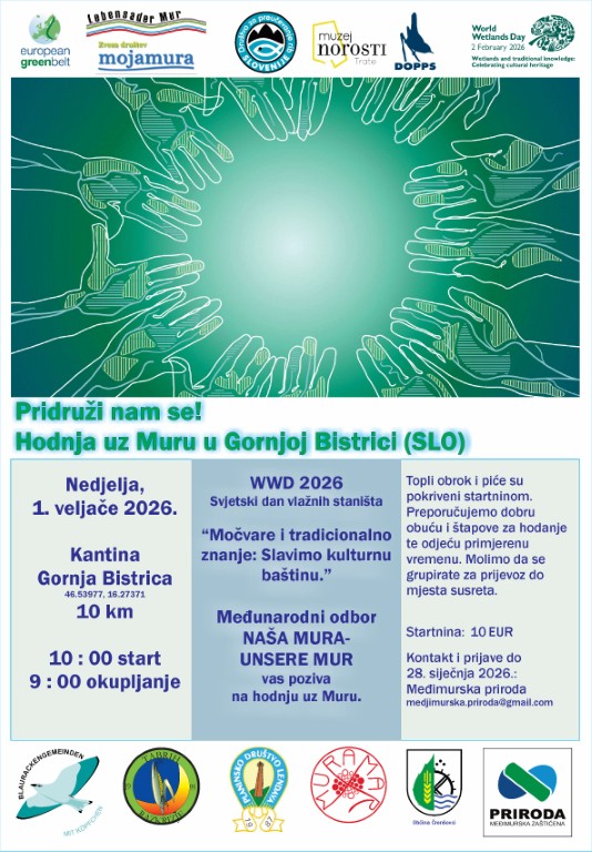 Događaj će se održati u nedjelju, 1. veljače 2026. godine, u slovenskom mjestu Gornja Bistrica. Okupljanje sudionika predviđeno je od 9 sati kod Kantine, dok je start hodnje zakazan za 10 sati. Međimurska priroda – Javna ustanova za zaštitu prirode poziva sve zainteresirane, a posebno žitelje Međimurja, da se pridruže ovoj akciji i podrže zaštitu rijeke Mure. Za sudjelovanje je potrebna topla odjeća i prikladna obuća, a startnina u iznosu od 10 eura uključuje topli obrok i piće za sve šetače.