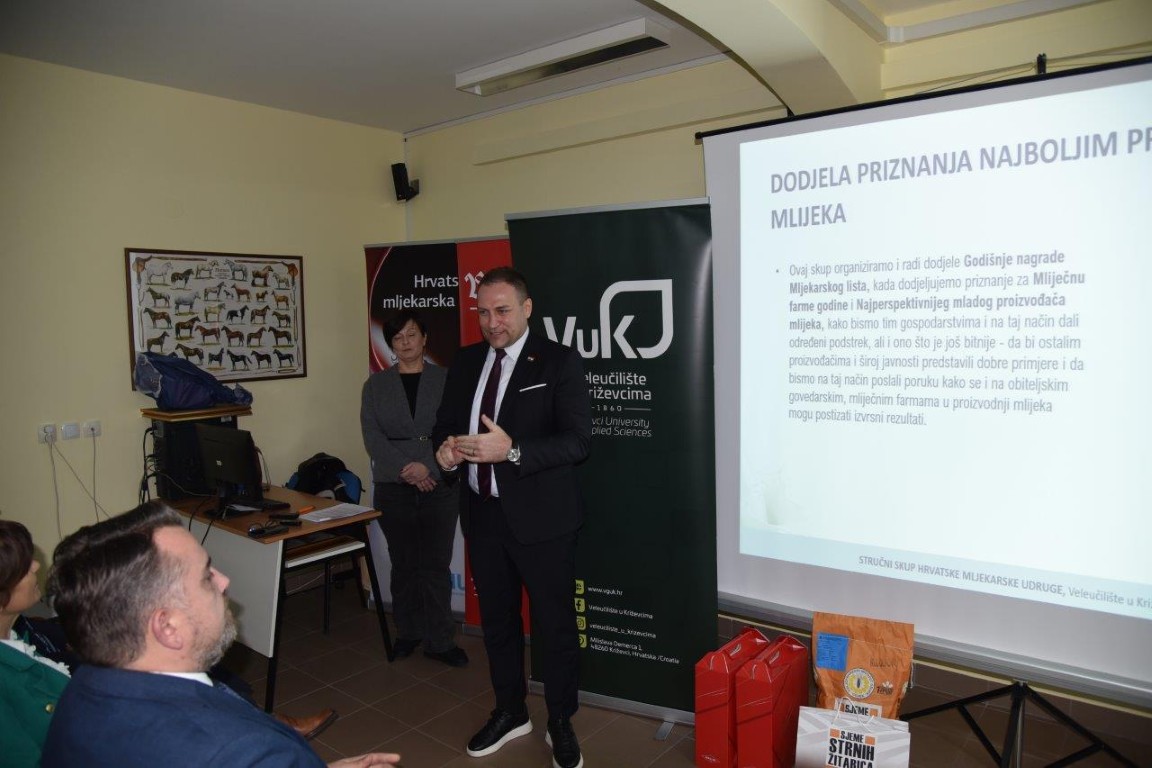 Na Veleučilištu u Križevcima danas je održan Stručni skup Hrvatske mljekarske udruge na kojem su dodijeljena prestižna godišnja priznanja najboljim domaćim proizvođačima mlijeka za 2025. godinu. Ovaj tradicionalni događaj okupio je vrh struke, predstavnike mljekarske industrije te državne dužnosnike, predvođene potpredsjednikom Vlade i ministrom poljoprivrede Davidom Vlajčićem.