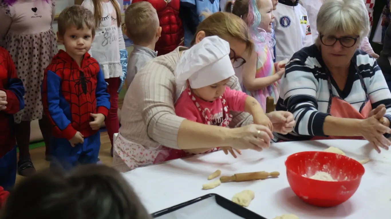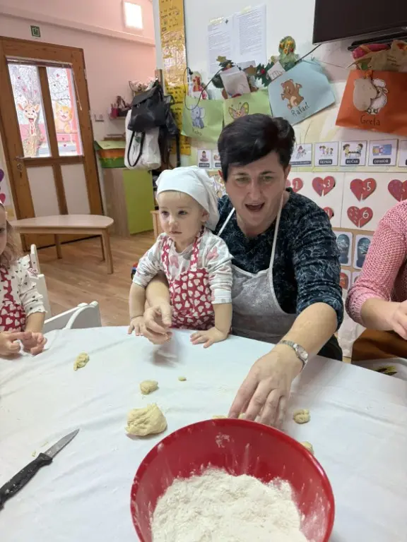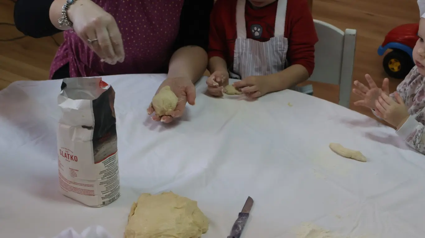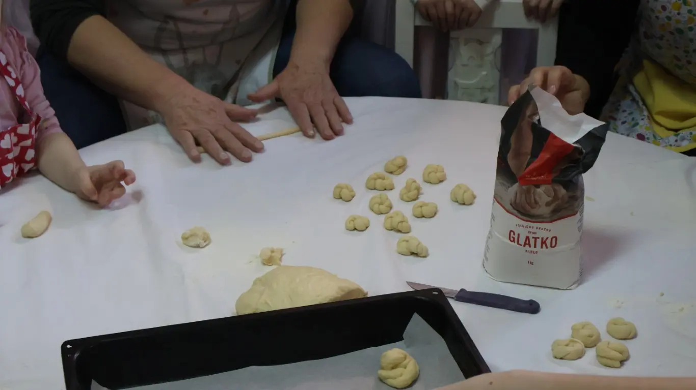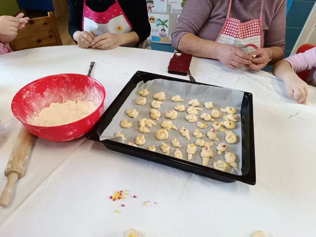 Dvorana vrtića brzo se ispunila mirisom domaćeg dizanog tijesta, a brašnaste ruke baka i njihovih unuka složno su oblikovale male ptice, simbole ljubavi i proljeća koje nam polako kuca na vrata. Bake su s velikim strpljenjem prenosile male tajne savršenog tijesta na svoje nasljednike, dok su djeca s ponosom pokazivala svoju kreativnost, pazeći na svaki detalj kako bi njihovi „ftičeki“ bili spremni za pečenje. Osim što su učili o pripremi tradicionalnih slastica, mališani su od svojih baka mogli čuti i stare priče o tome kako se nekada u Međimurju slavio ovaj dan, kada bi djeca u grmlju tražila darove koje su im „ftičeki“ ostavili nakon svadbe.