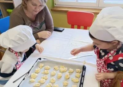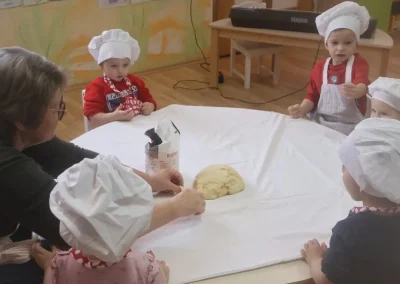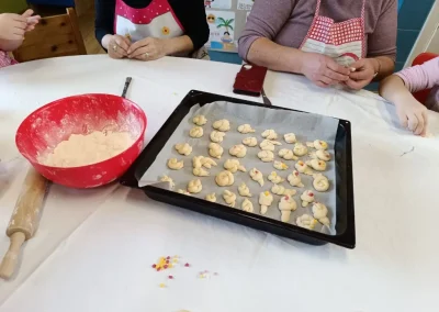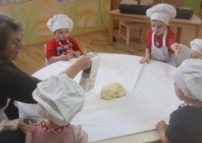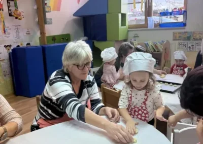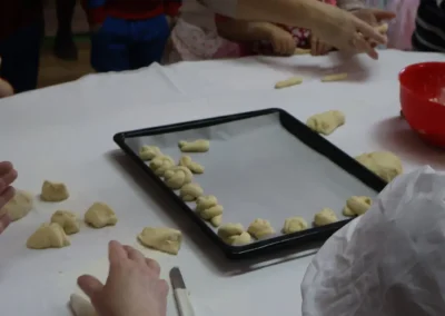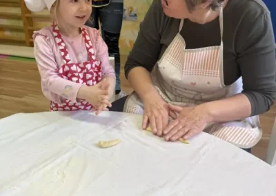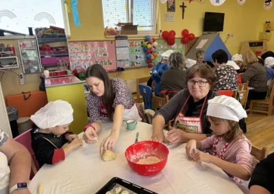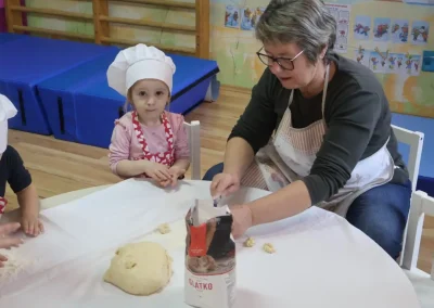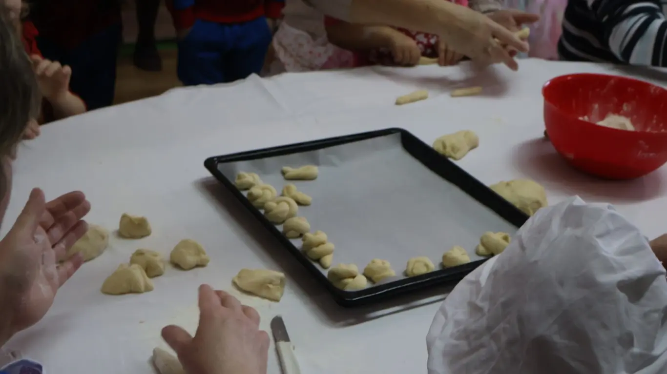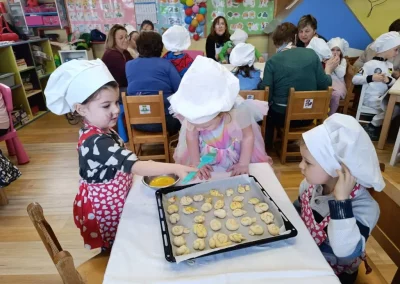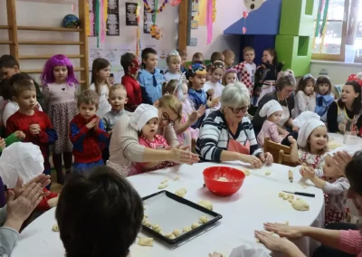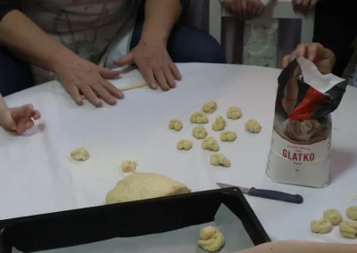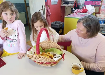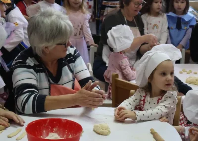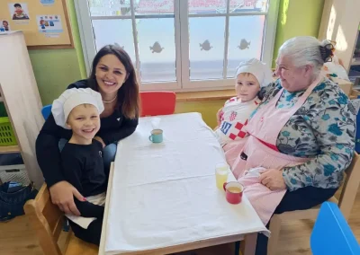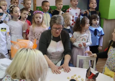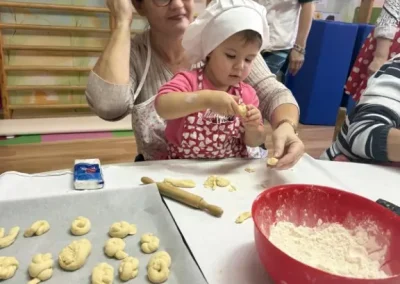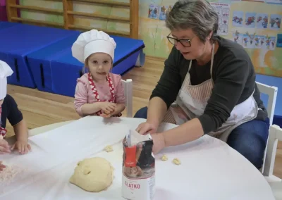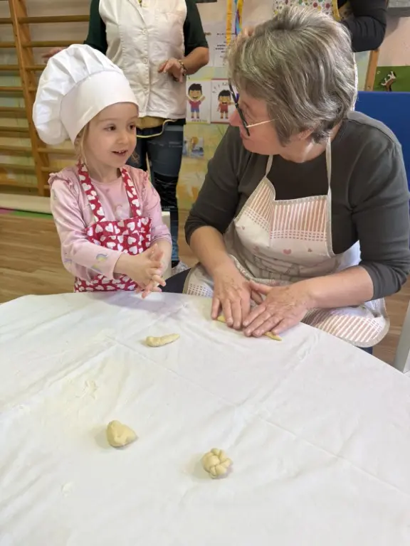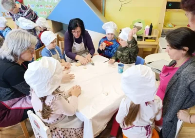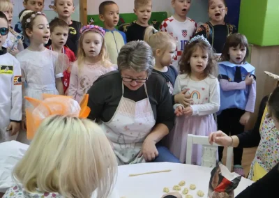 Dvorana vrtića brzo se ispunila mirisom domaćeg dizanog tijesta, a brašnaste ruke baka i njihovih unuka složno su oblikovale male ptice, simbole ljubavi i proljeća koje nam polako kuca na vrata. Bake su s velikim strpljenjem prenosile male tajne savršenog tijesta na svoje nasljednike, dok su djeca s ponosom pokazivala svoju kreativnost, pazeći na svaki detalj kako bi njihovi „ftičeki“ bili spremni za pečenje. Osim što su učili o pripremi tradicionalnih slastica, mališani su od svojih baka mogli čuti i stare priče o tome kako se nekada u Međimurju slavio ovaj dan, kada bi djeca u grmlju tražila darove koje su im „ftičeki“ ostavili nakon svadbe.