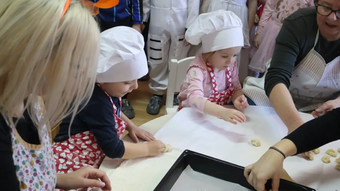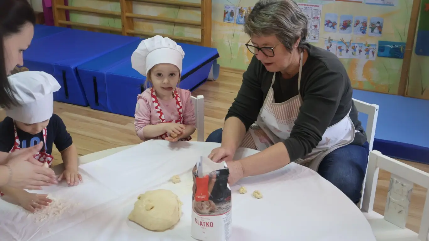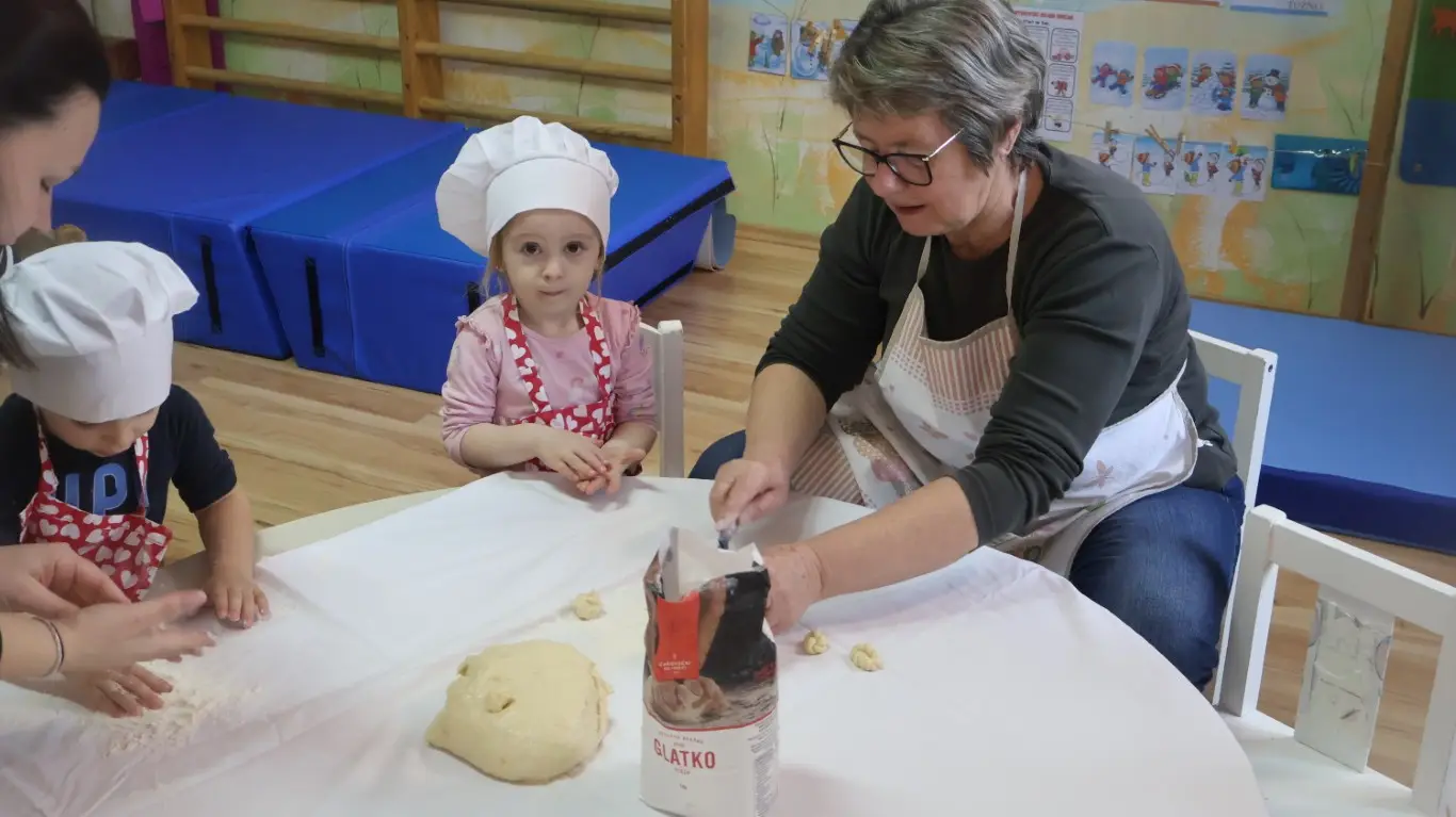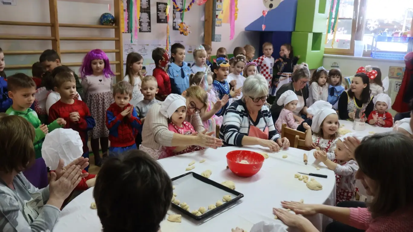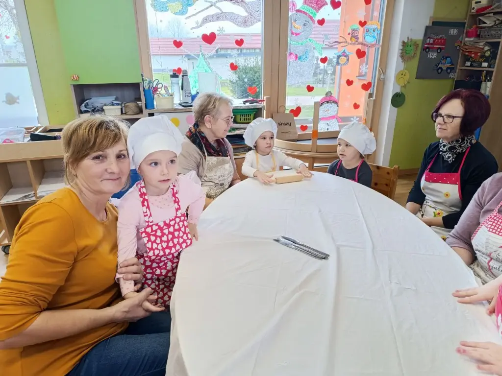 Prošlog su petka prostorije dječjeg vrtića „Ribica“ u Žabniku postale pravo središte tradicije, smijeha i topline. Povodom nadolazećeg Valentinova, koje se u narodu od davnina veže uz običaj „ženidbe ftičeka“, mališani su ugostili svoje bake na posebnoj kulinarskoj radionici. Glavni zadatak bio je izrada tradicionalnih „ftičekovih kolača“, čime je na najljepši način povezana dječja razigranost s mudrošću i vještinom starijih generacija.
