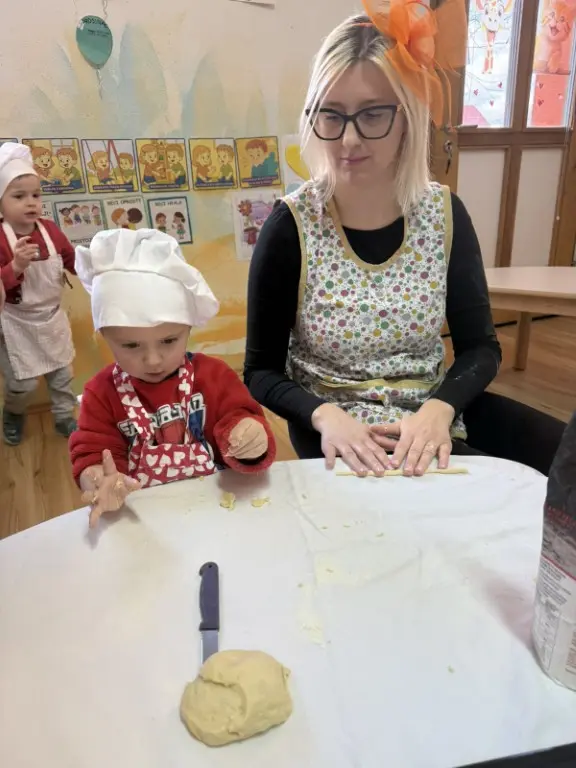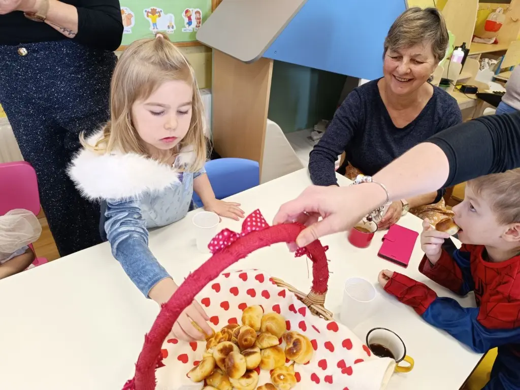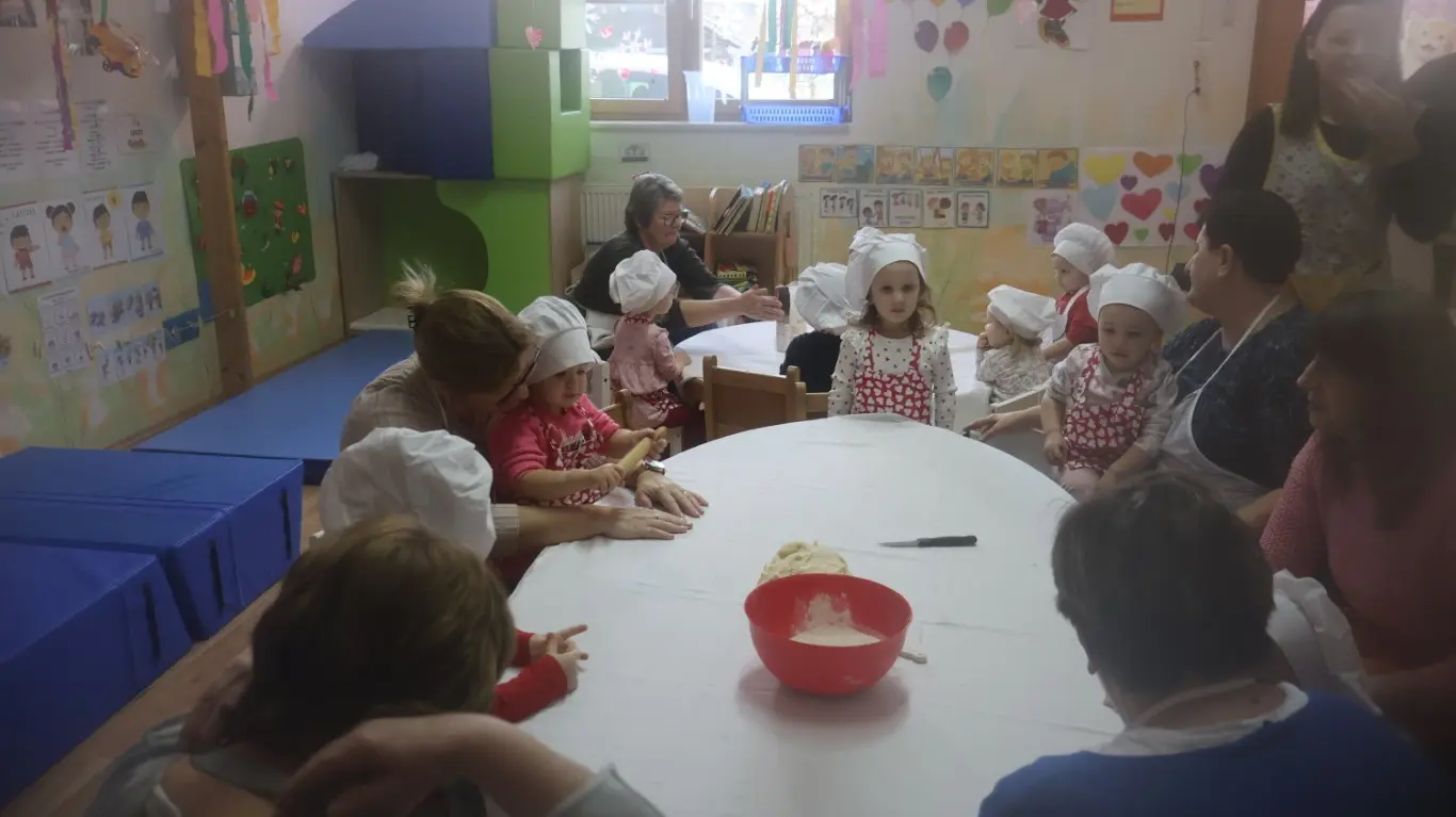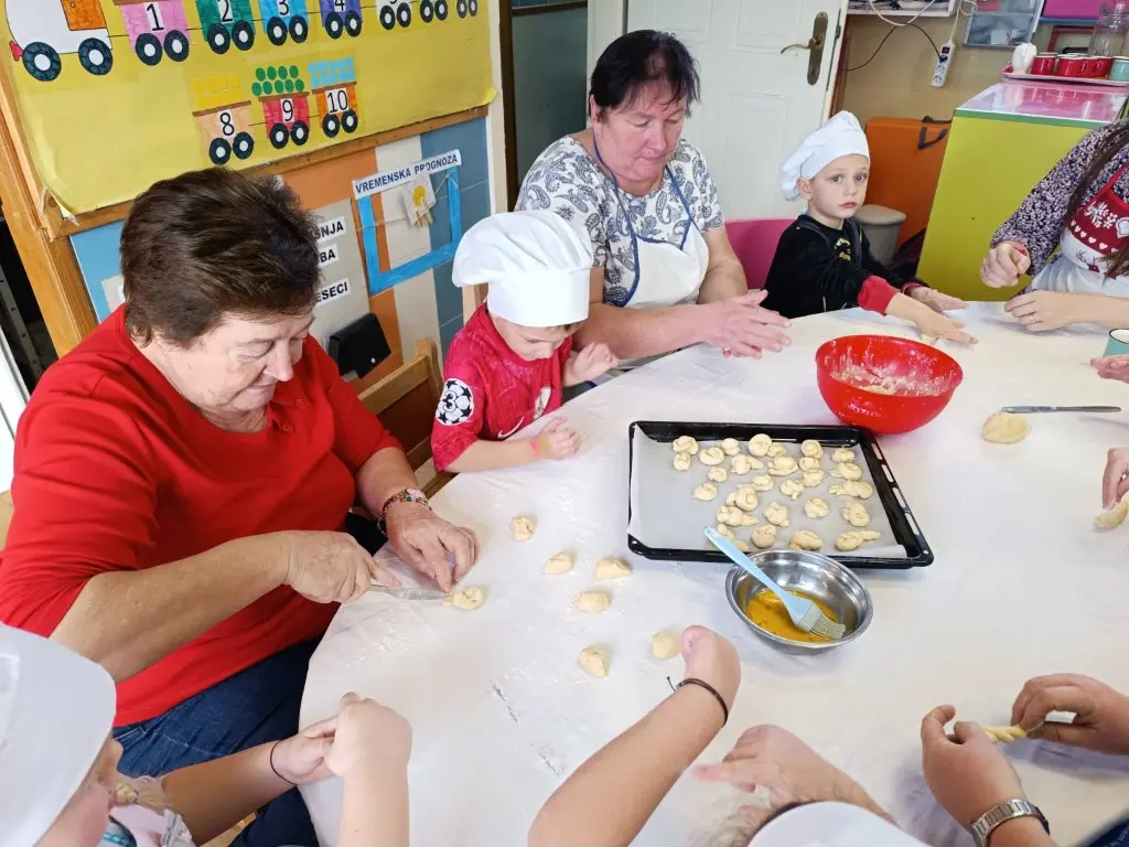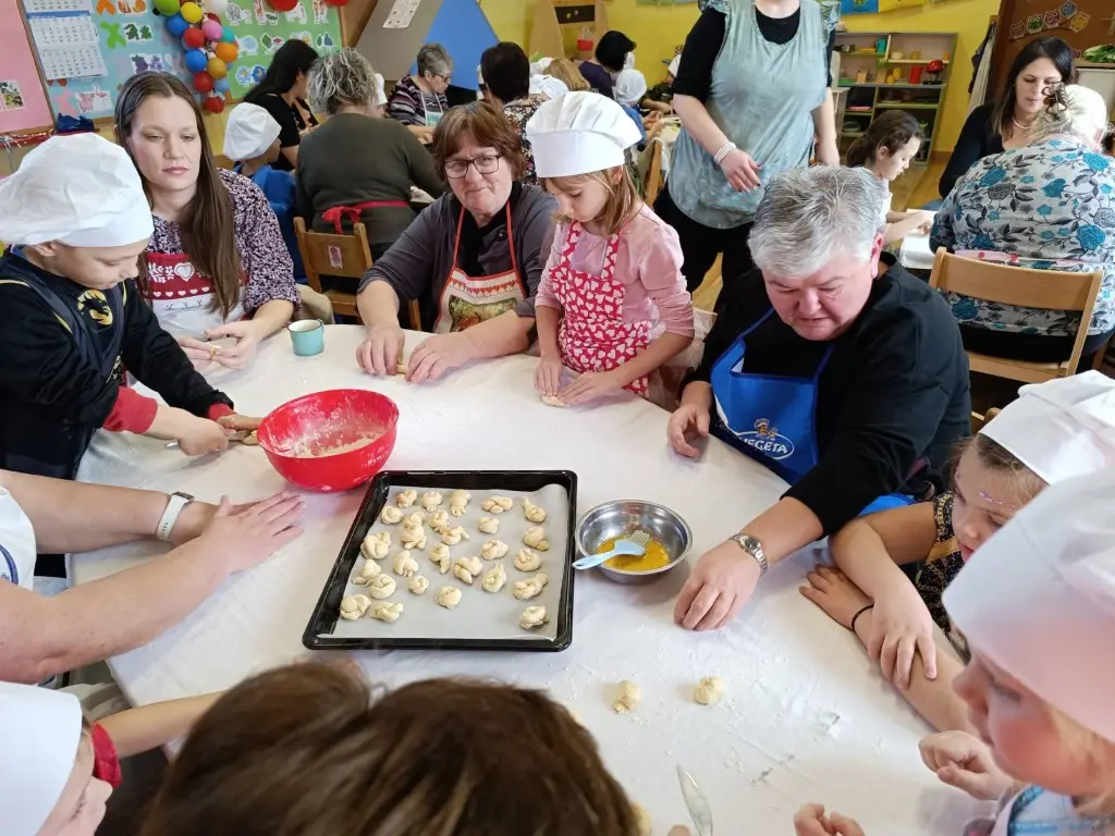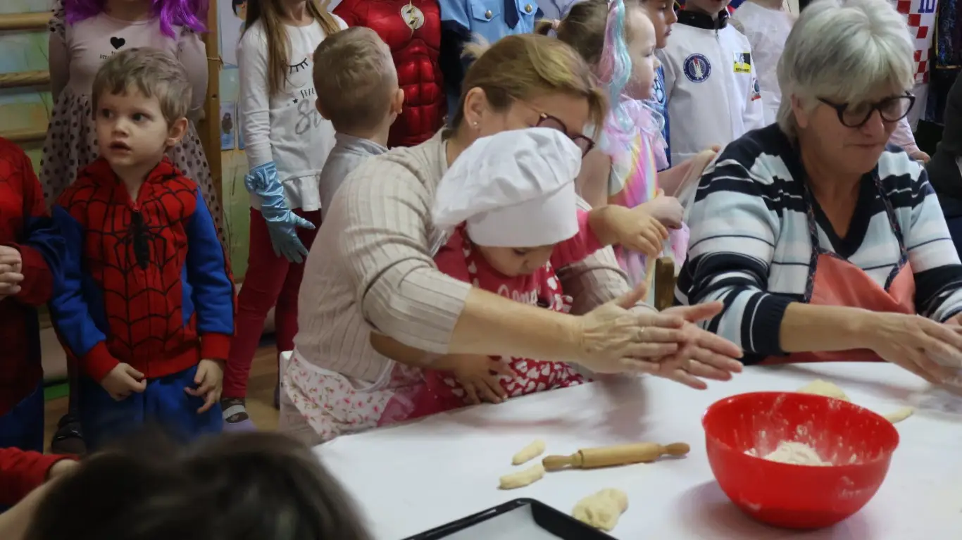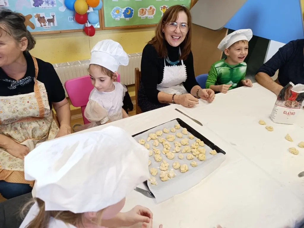 Prošlog su petka prostorije dječjeg vrtića „Ribica“ u Žabniku postale pravo središte tradicije, smijeha i topline. Povodom nadolazećeg Valentinova, koje se u narodu od davnina veže uz običaj „ženidbe ftičeka“, mališani su ugostili svoje bake na posebnoj kulinarskoj radionici. Glavni zadatak bio je izrada tradicionalnih „ftičekovih kolača“, čime je na najljepši način povezana dječja razigranost s mudrošću i vještinom starijih generacija.