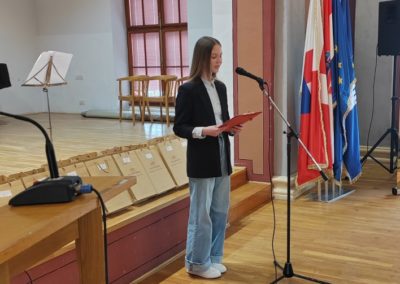 Među srednjoškolskim autorima dominirale su učenice Gimnazije Josipa Slavenskog Čakovec, koje su odnijele sve tri glavne nagrade. Najuspješnija je bila Valeria Marčec s pjesmom „Svečari“, a slijede je Eva Šafarić i Zoja Šestak. Pohvale u ovoj kategoriji zaslužile su Sara Matulin iz Srednje škole Čakovec te Helena Mikec. Nagrađenim učenicima i njihovim mentorima uručene su novčane nagrade i knjige, uz naglasak županijskih i gradskih čelnika na važnost brige o vlastitom jeziku kao ključnom temelju svake kulture.