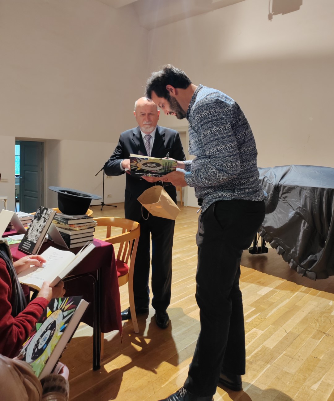 Gregor Kraljić također je s prisutnima podijelio zadovoljstvo nedavnim prijemom u prestižno Društvo hrvatskih književnika, što svjedoči o prepoznavanju njegovog rada u hrvatskim književnim krugovima. Spomenuo je i zanimljivu suradnju koju trenutno ostvaruje s popularnom slovenskom glazbenom grupom „Laibach“, najavljujući time proširenje svog umjetničkog djelovanja.