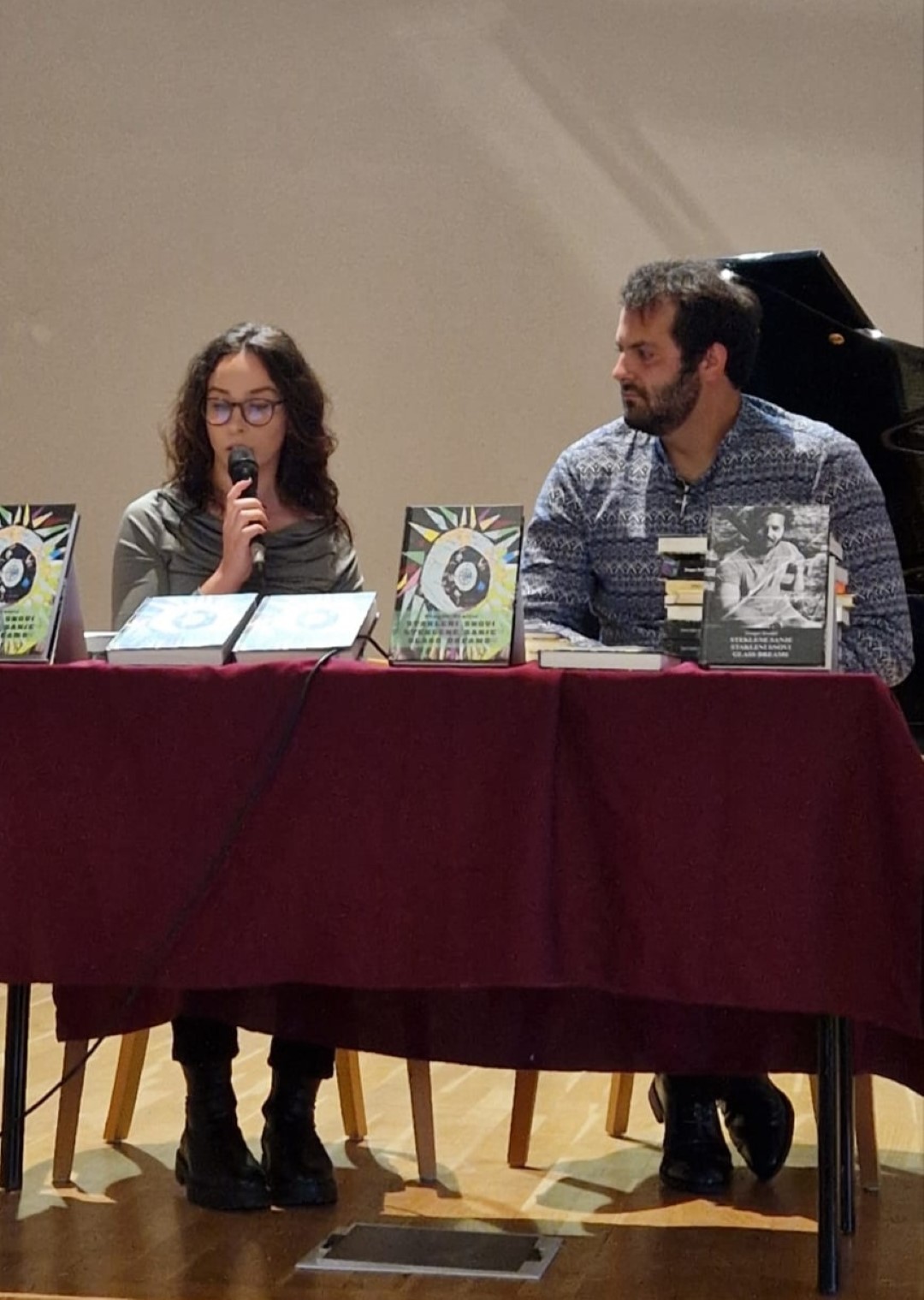Kroz zanimljiv razgovor s voditeljicom programa Lucijom Dania, autor Gregor Kraljić publici je otkrio detalje o svom kreativnom putu. Govorio je o inspirativnom okruženju u kojem je odrastao, istaknuvši značajnu potporu oca Zlatka Kraljića, također renomiranoga slovenskog književnika i likovnog umjetnika. Objašnjavajući naslov svoje najnovije zbirke, “Stakleni snovi”, pojasnio je kako sintagma simbolizira krhkost umjetničke vizije u suvremenom svijetu, temu koja je centralna u njegovom pjesničkom stvaralaštvu.
