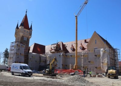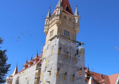 U unutrašnjosti objekta već je uređeno potkrovlje sa smještajnim kapacitetima za goste, dok se u atraktivnom tornju dvorca upravo završava montaža prozora i elektroinstalacija. Prizemlje i podrum dvorca prošli su kroz opsežne restauratorske i soboslikarske zahvate, a u narednim danima slijedi ključna ugradnja modernog dizala i polaganje podnih obloga. Paralelno s unutarnjim uređenjem, u punom su jeku radovi na obnovi fasade i pročelja, uključujući i rekonstrukciju glavnoga erkera.