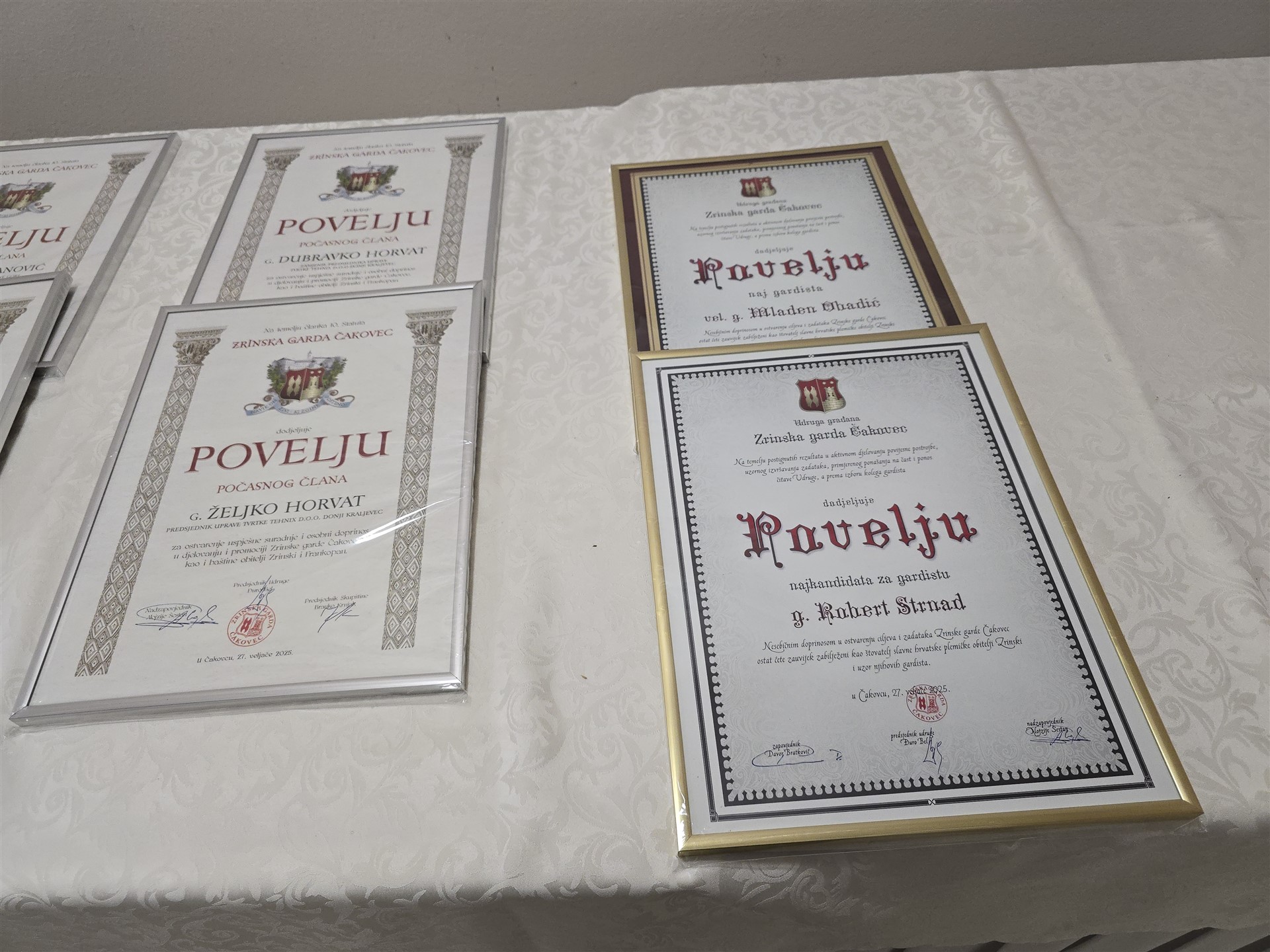 Najsvečaniji dio sjednice uslijedio je na samom kraju, kada su dodijeljena posebna priznanja gardistima i proglašeni počasni članovi. Tako je prema broju nastupa u 2024. godini najgardistom Zrinske garde Čakovec proglašen Mladen Obadić, inače prvi gardist i prvi i dugogodišnji zapovjednik postrojbe. Također, prema aktivnostima i broju nastupa u 2024. godini najkandidatom za gardista Zrinske garde proglašen je Robert Strnad.
