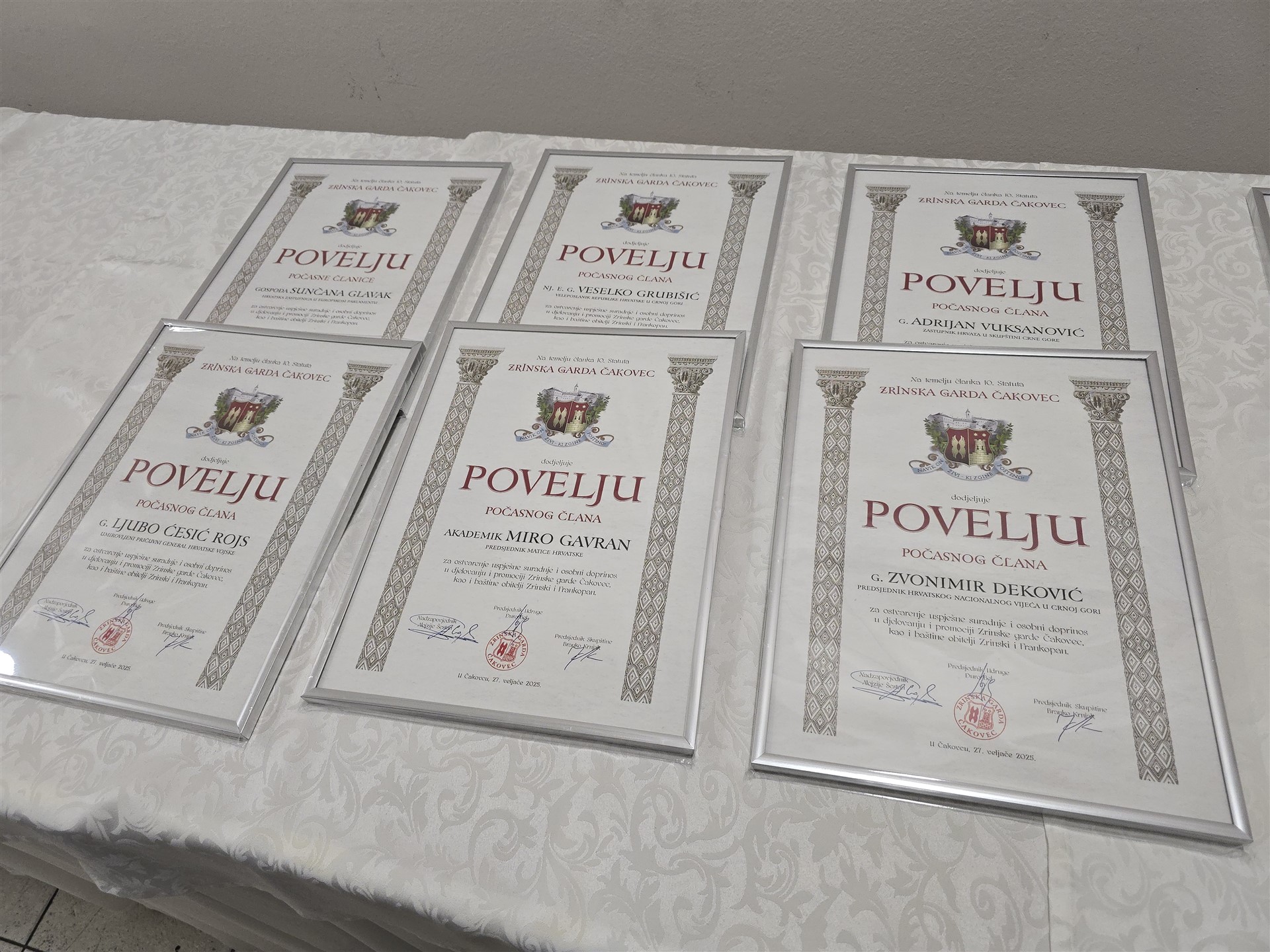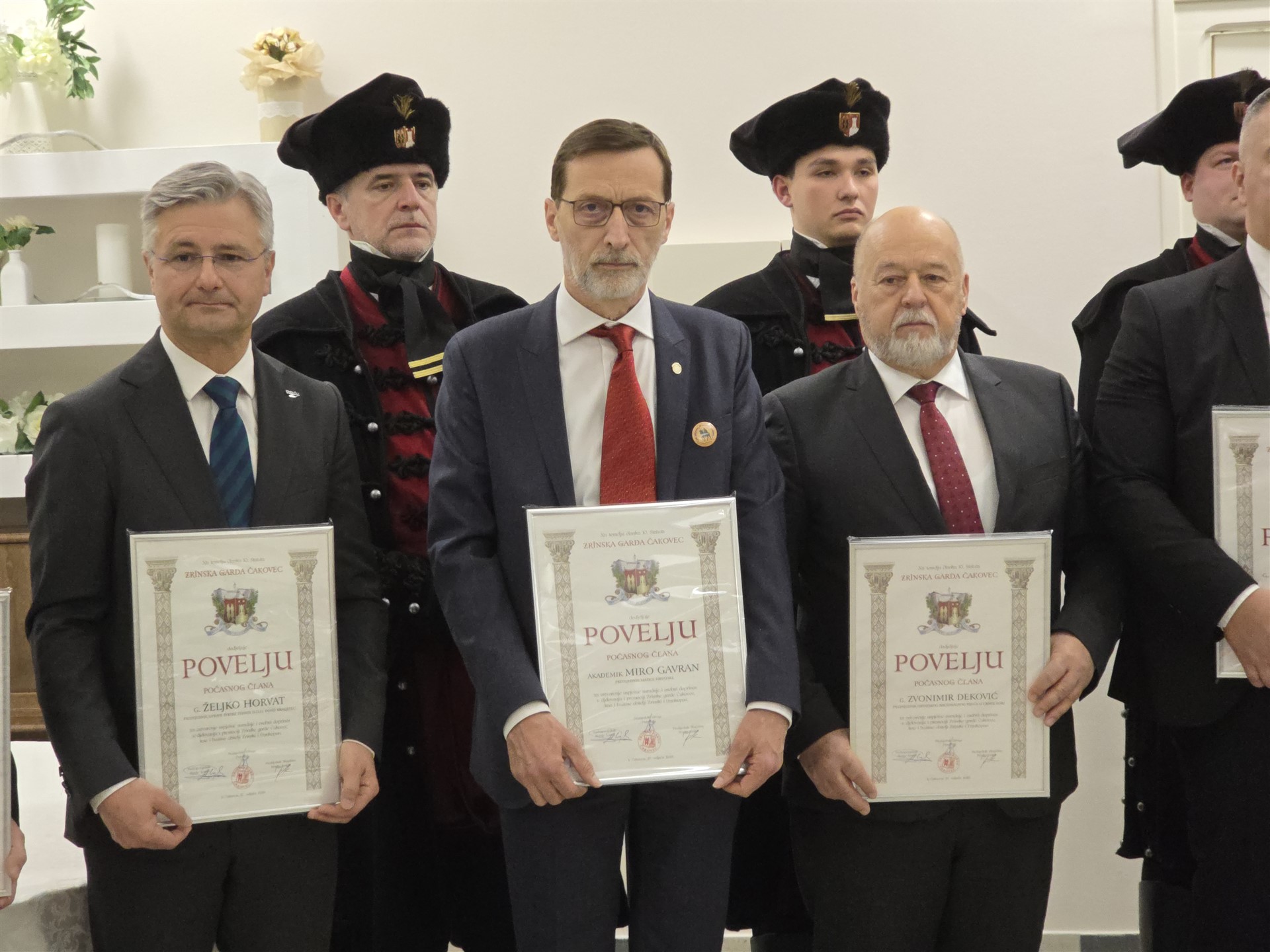 Za osobni doprinos u djelovanju Zrinske garde Čakovec, svjedočenje domoljublja i rodoljublja, kao i za promociju hrvatske baštine, povijesti i kulture, ostavštine obitelji Zrinski i Frankopan te vrednota Domovinskog rata, počasnim članovima Zrinske garde Čakovec proglašeni su:
