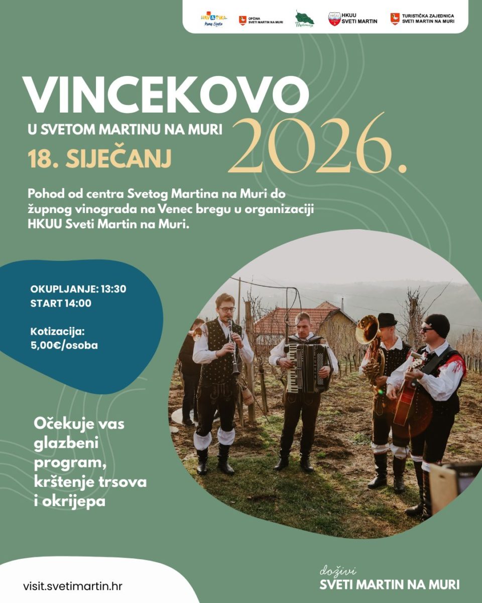 Sveti Martin na Muri i ove godine otvara vrata vinogradarske sezone jednim od najomiljenijih običaja. U nedjelju se održava tradicionalni "Vincekov pohod", pozivajući sve ljubitelje prirode, dobre kapljice i domaće tradicije na zajedničko druženje. Započeti...