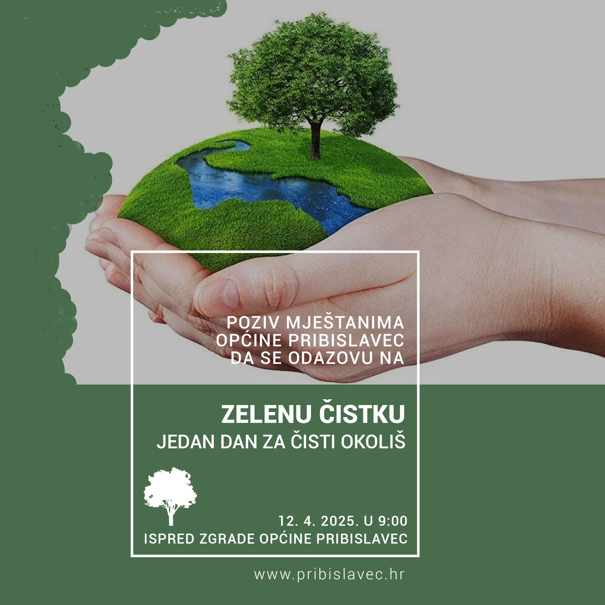 Stoga, Općina Pribislavec srdačno poziva sve mještane, mlade i stare, da se pridruže Zelenoj čistki 12. travnja i svojim sudjelovanjem daju svoj doprinos ljepšem i čišćem Pribislavcu. Pokažimo zajedno da nam je stalo do našeg okoliša!