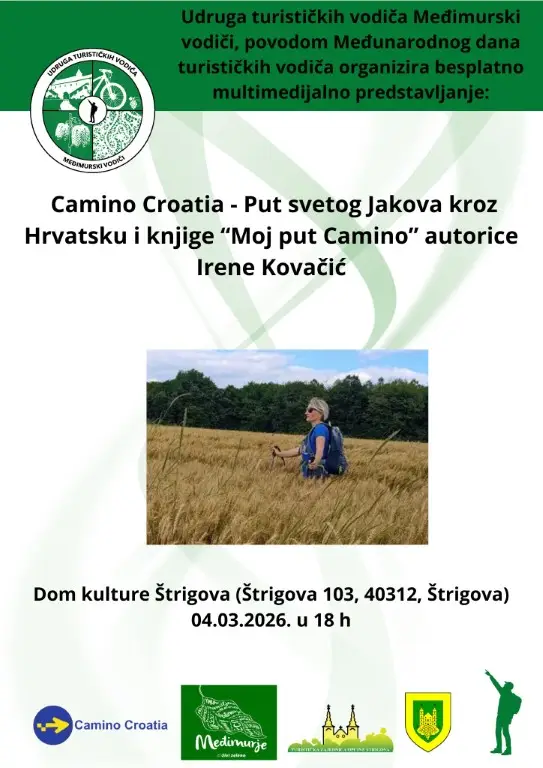 Dom kulture Štrigova ove će srijede, 4. ožujka 2026. godine u 18 sati, postati središte hodočasničkog duha i inspirativnih životnih priča. Udruga turističkih vodiča „Međimurski vodiči“ organizira multimedijalno predstavljanje projekta Camino Croatia te promociju putopisa „Moj put Camino“ autorice Irene Kovačić. Ovaj događaj idealna je prilika za sve koji razmišljaju o vlastitom hodočašću, ljubitelje aktivnog turizma ili one koji jednostavno žele čuti priču o osobnoj transformaciji na putu dugom 800 kilometara.