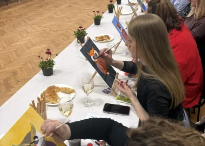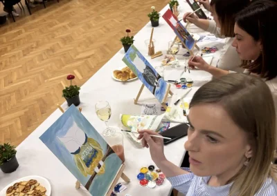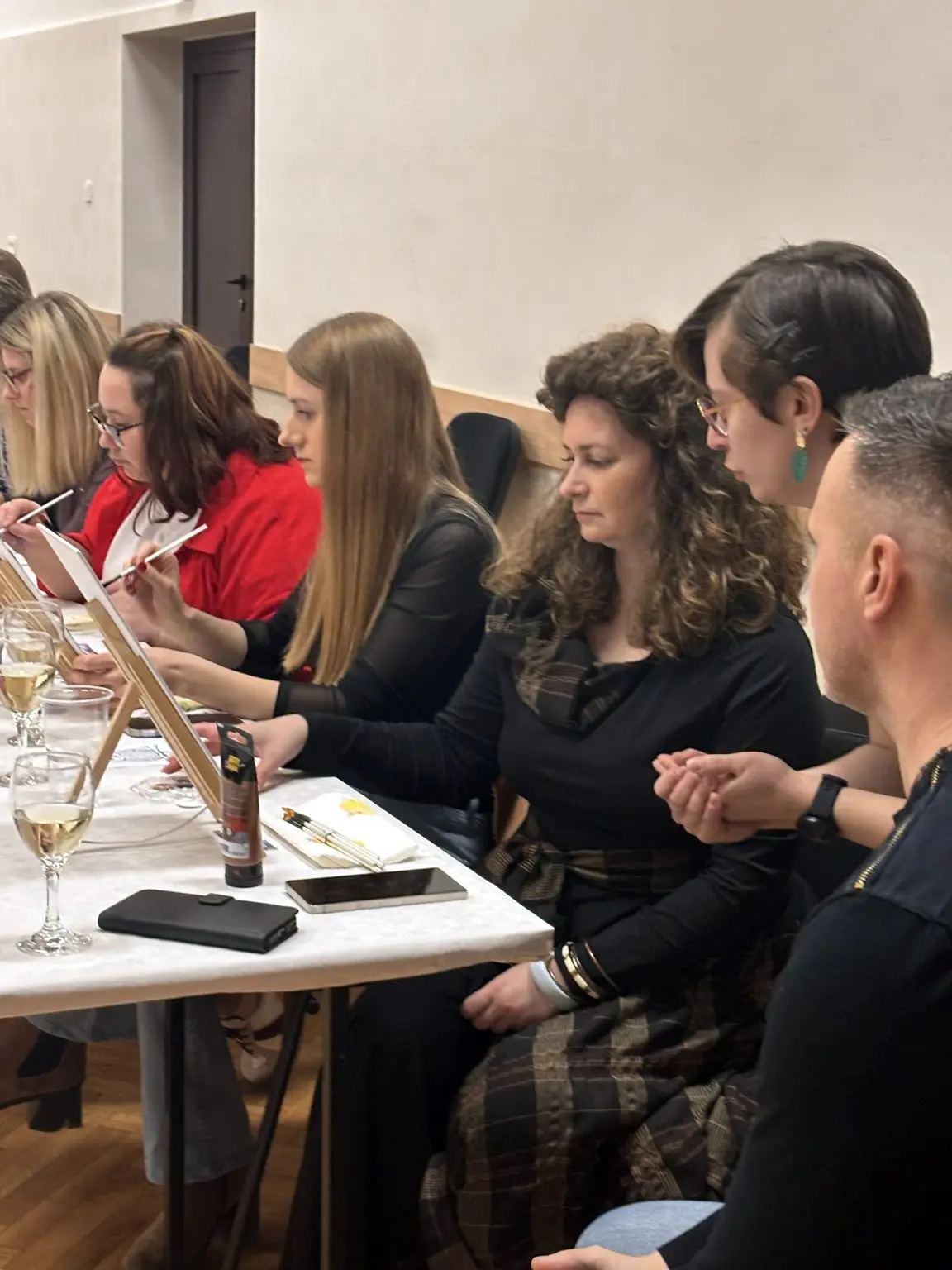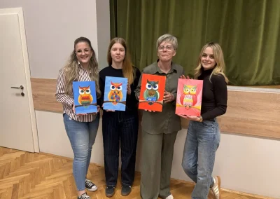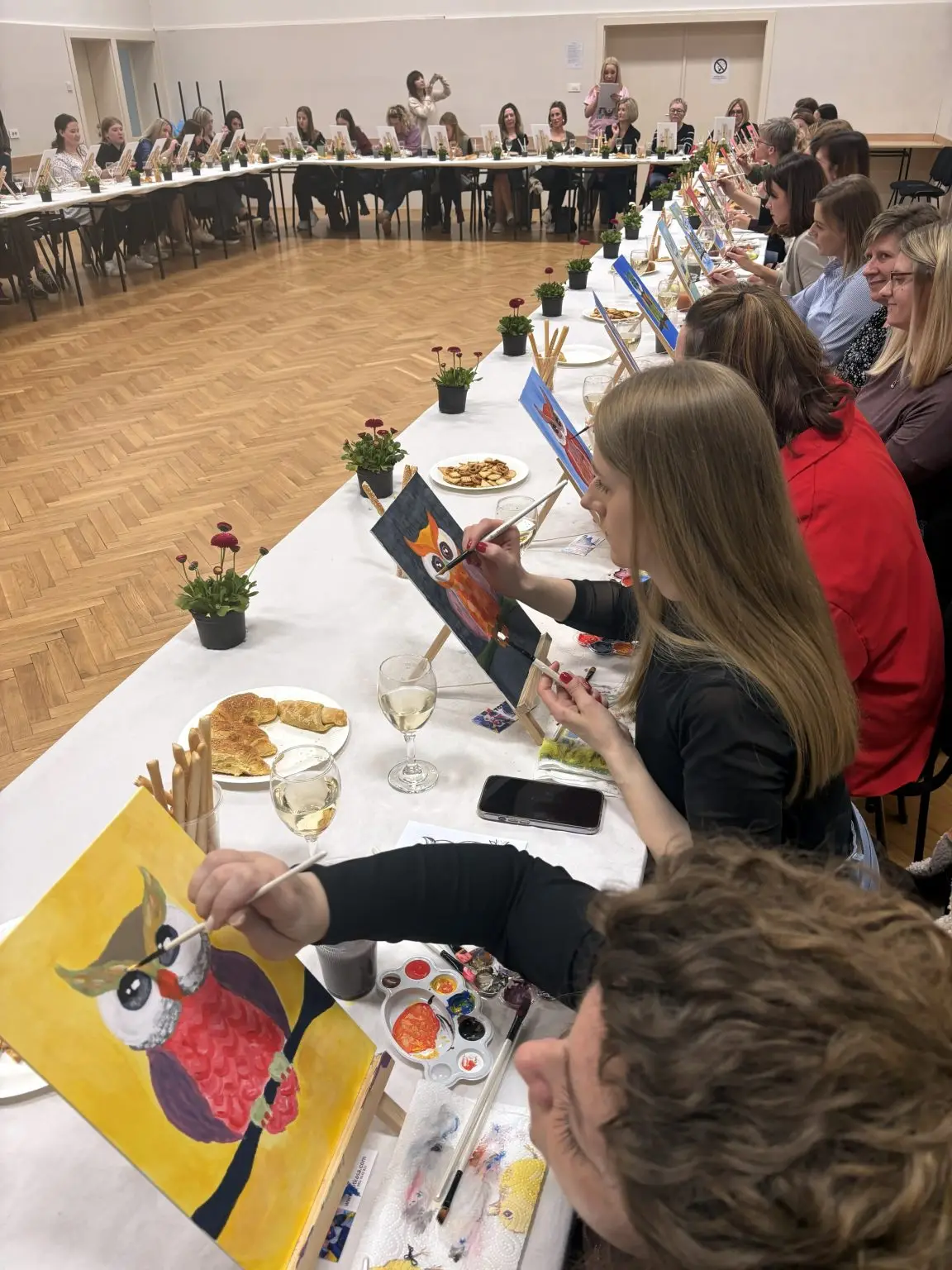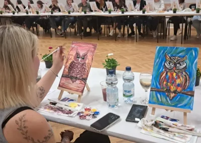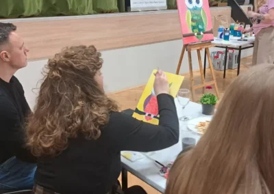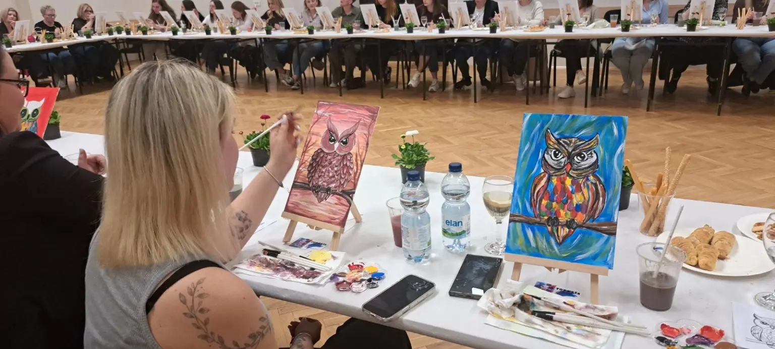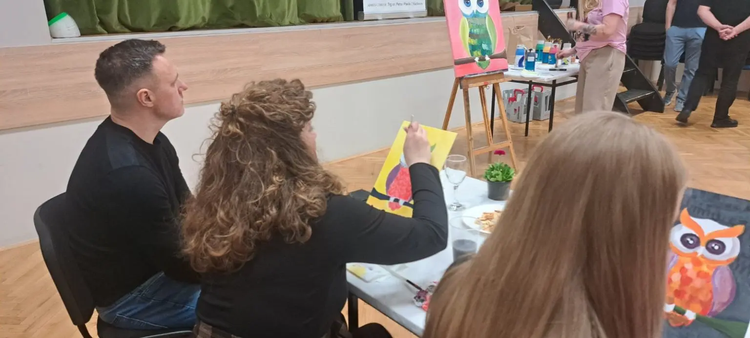 Atmosefera je bila ispunjena smijehom i inspiracijom, a sudionici su, uz čašu vina, korak po korak stvarali svoja mala remek-djela. Glavnu riječ vodila je članica udruge i poznata slikarica Kristina Tot Kaša. Svojim stručnim savjetima i strpljenjem pomogla je čak i onima koji godinama nisu držali kist u rukama da oslobode svoju kreativnost.