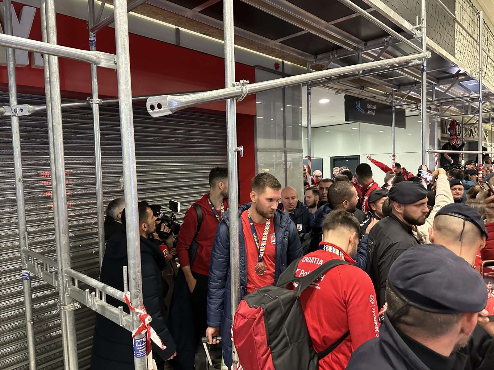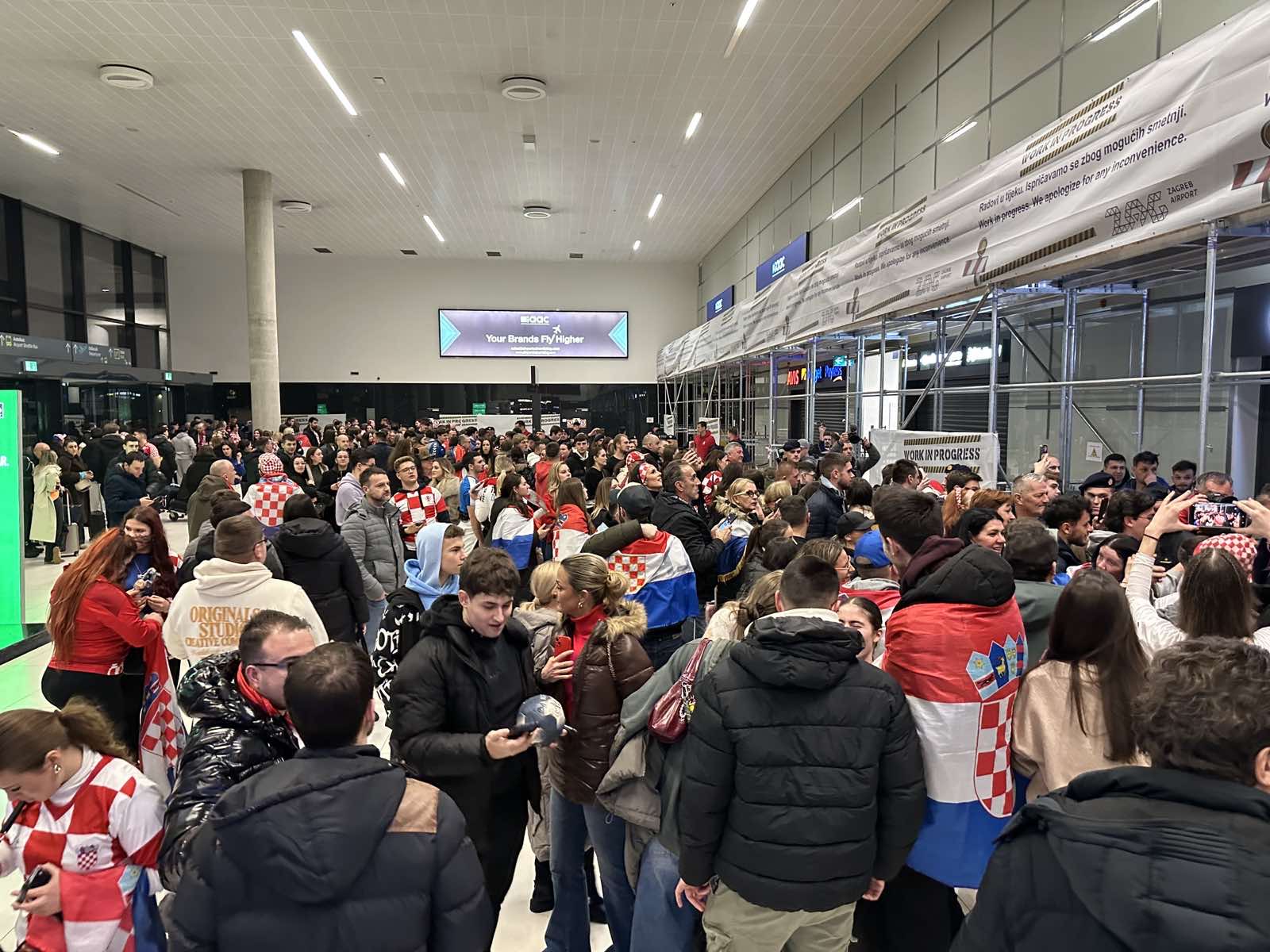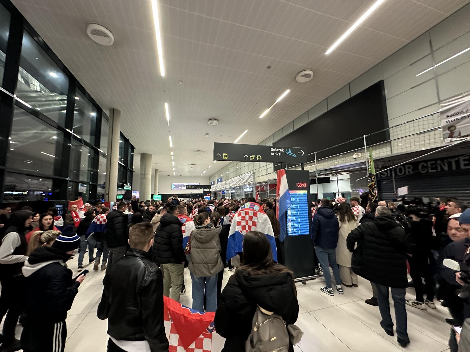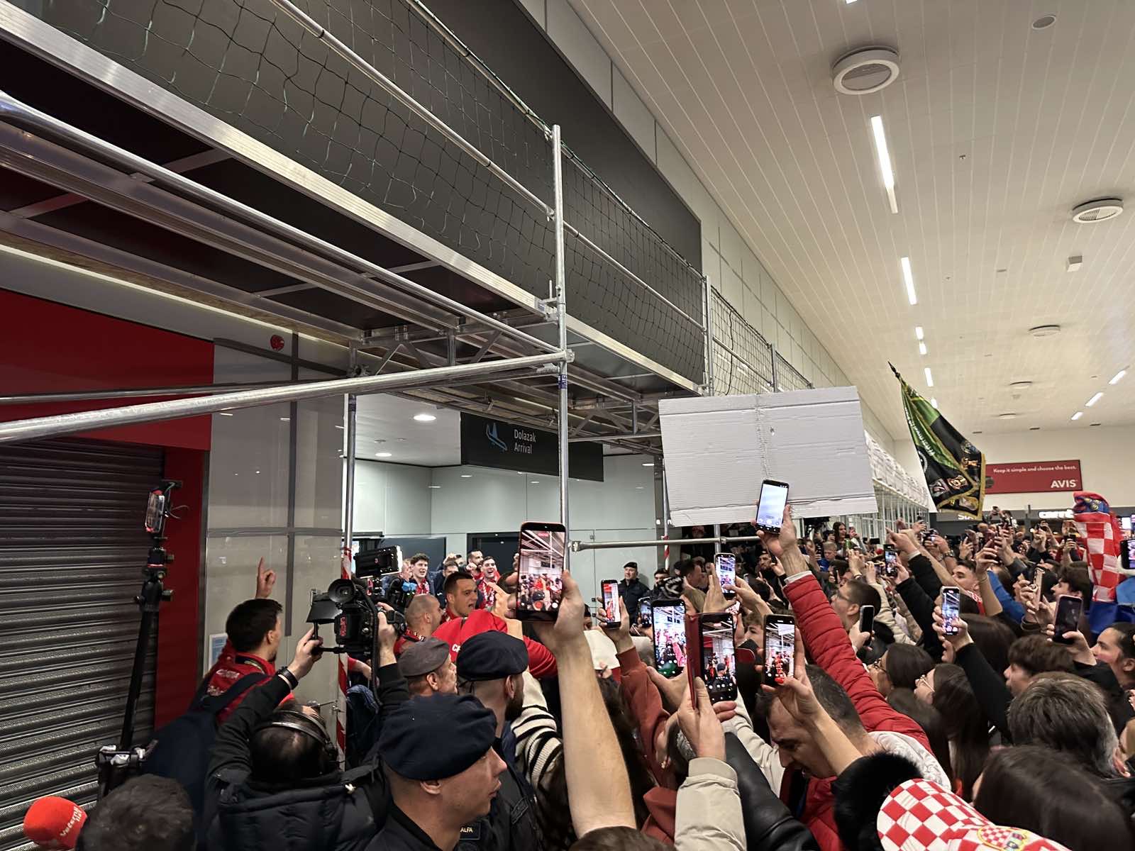 Reprezentacija je iz Danske sletjela iza 3:00 sata ujutro, a stotine navijača opremljenih zastavama i dresovima priredilo je doček za pamćenje. Prostorom su odjekivali hitovi Marka Perkovića Thompsona, Prljavog kazališta i Jure Stublića, dok su igrači dočekani ovacijama uz pjesmu „Ako ne znaš šta je bilo“.