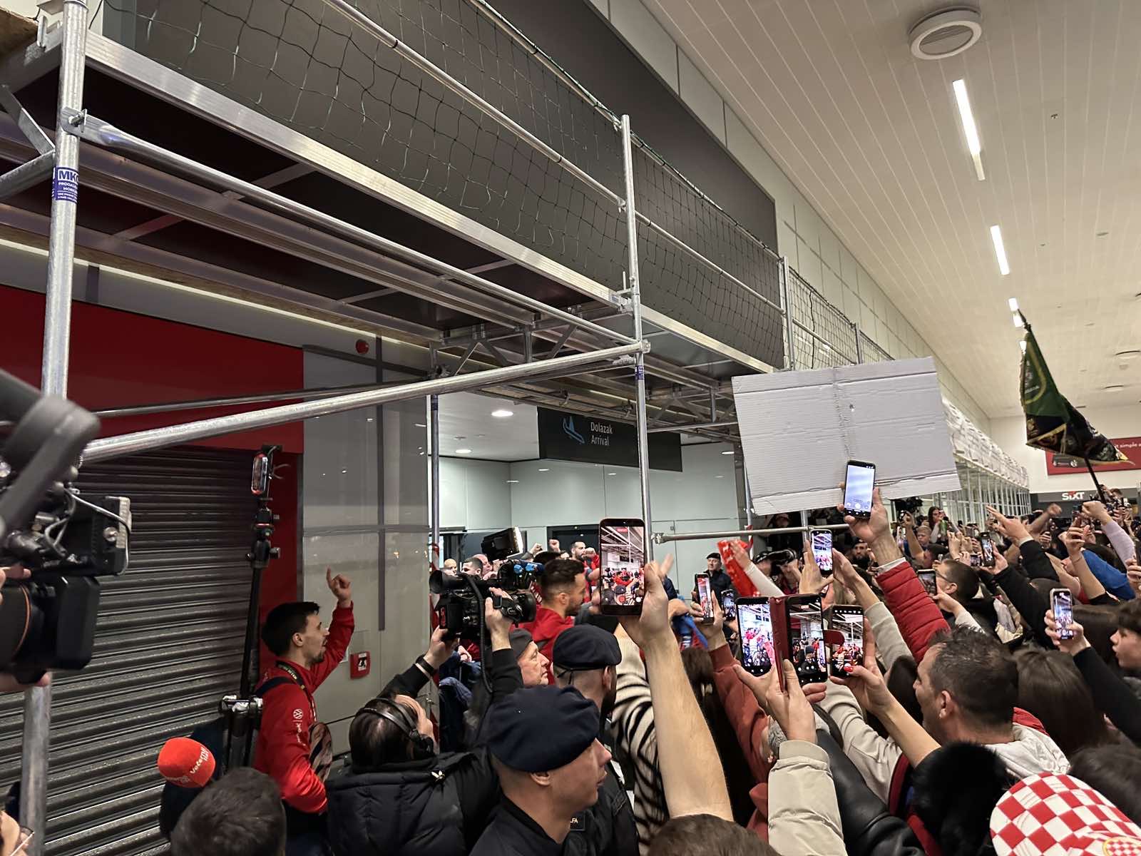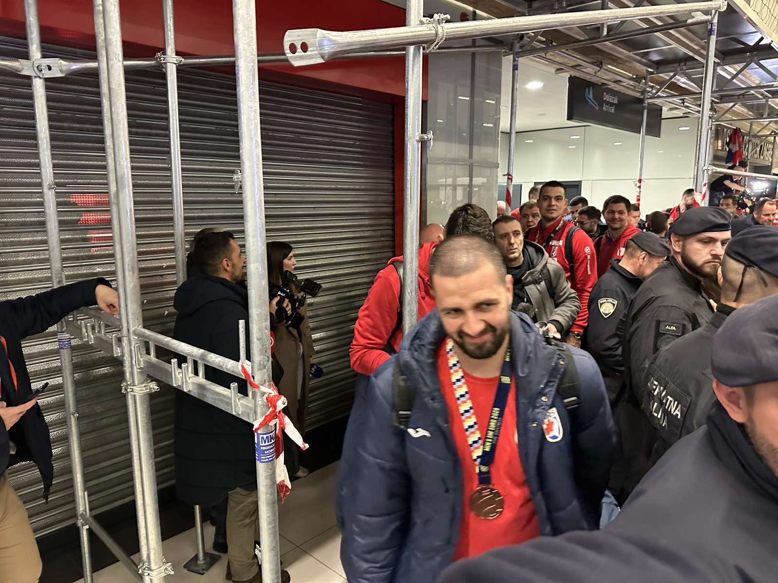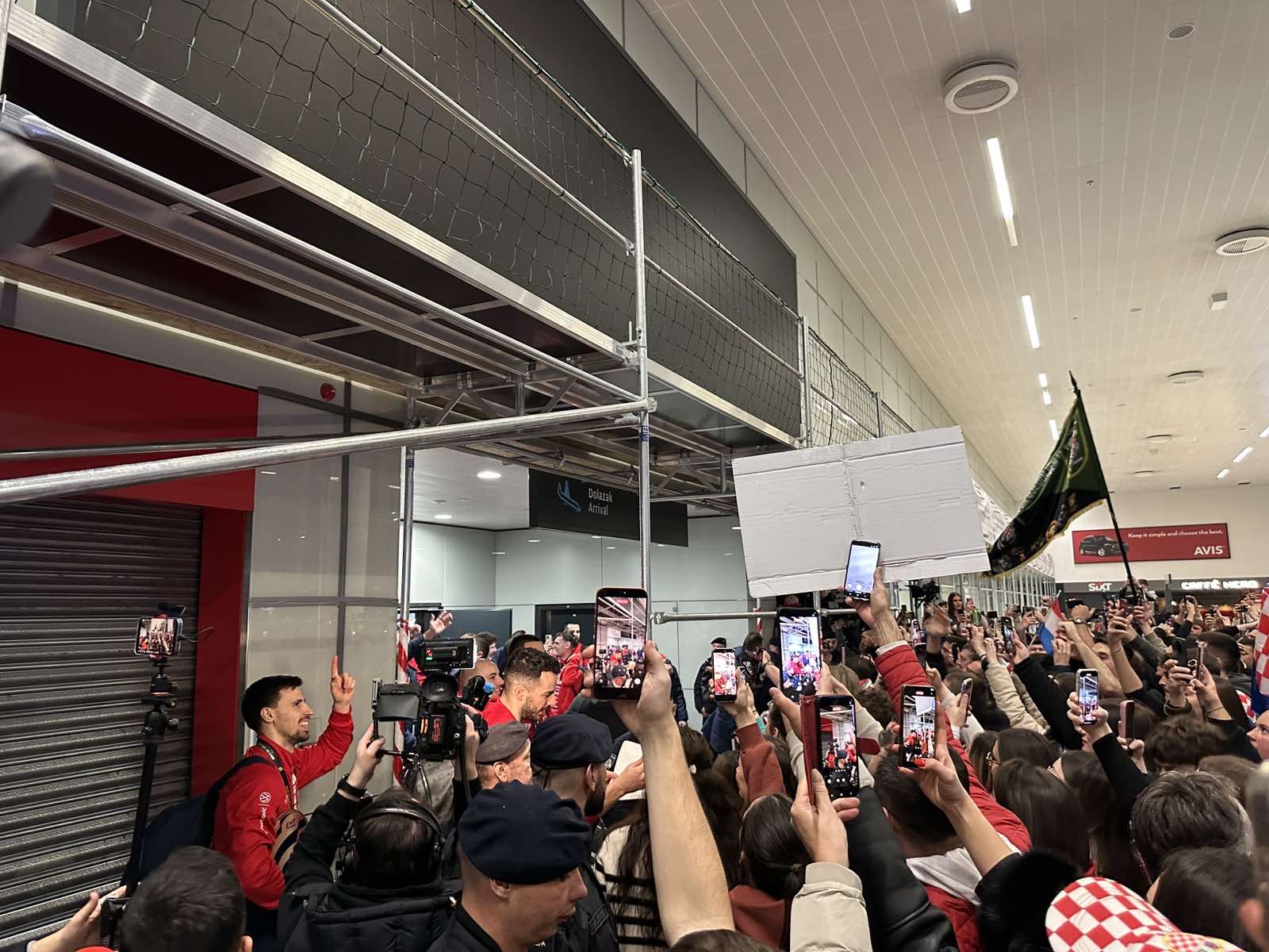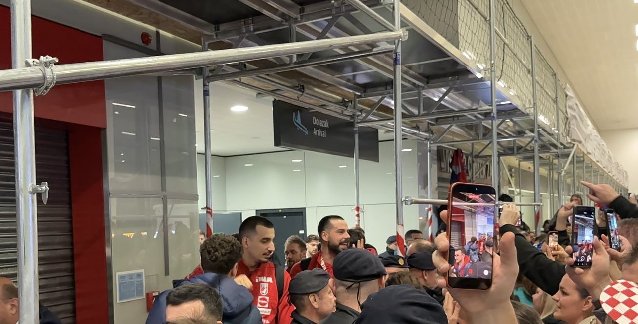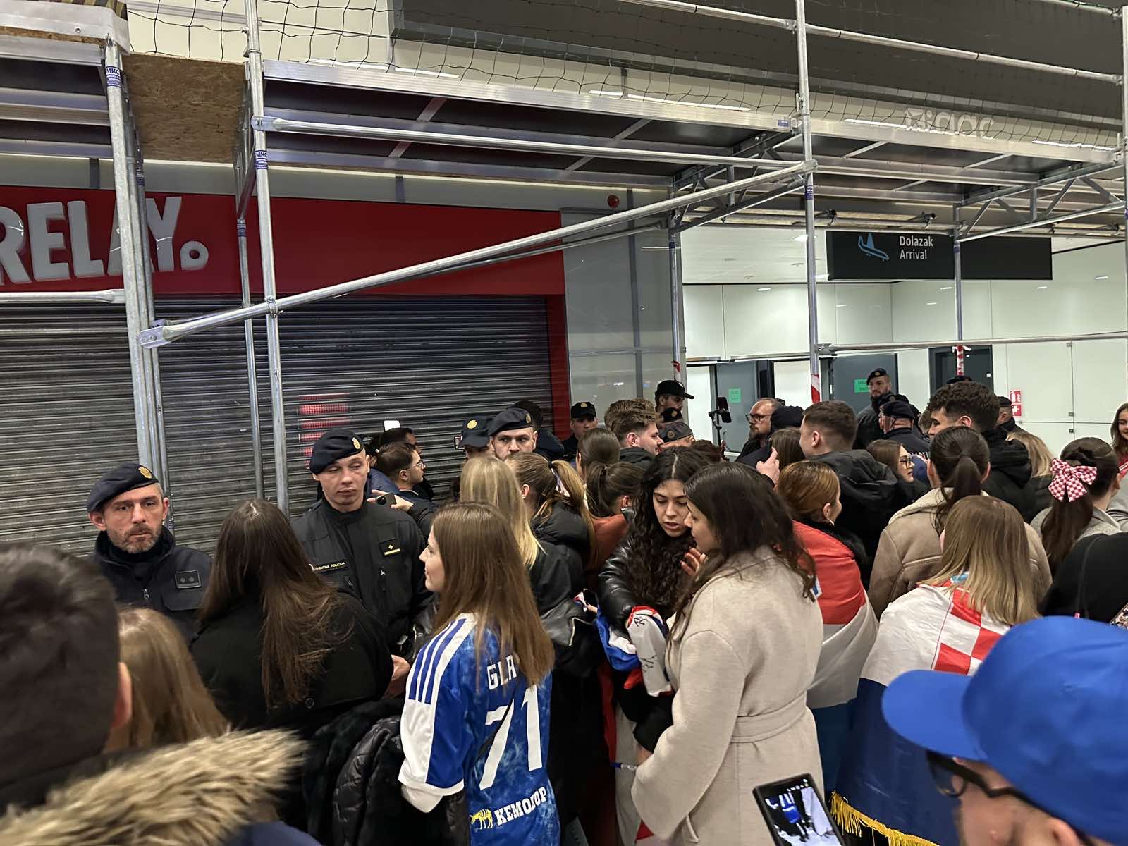 Reprezentacija je iz Danske sletjela iza 3:00 sata ujutro, a stotine navijača opremljenih zastavama i dresovima priredilo je doček za pamćenje. Prostorom su odjekivali hitovi Marka Perkovića Thompsona, Prljavog kazališta i Jure Stublića, dok su igrači dočekani ovacijama uz pjesmu „Ako ne znaš šta je bilo“.
