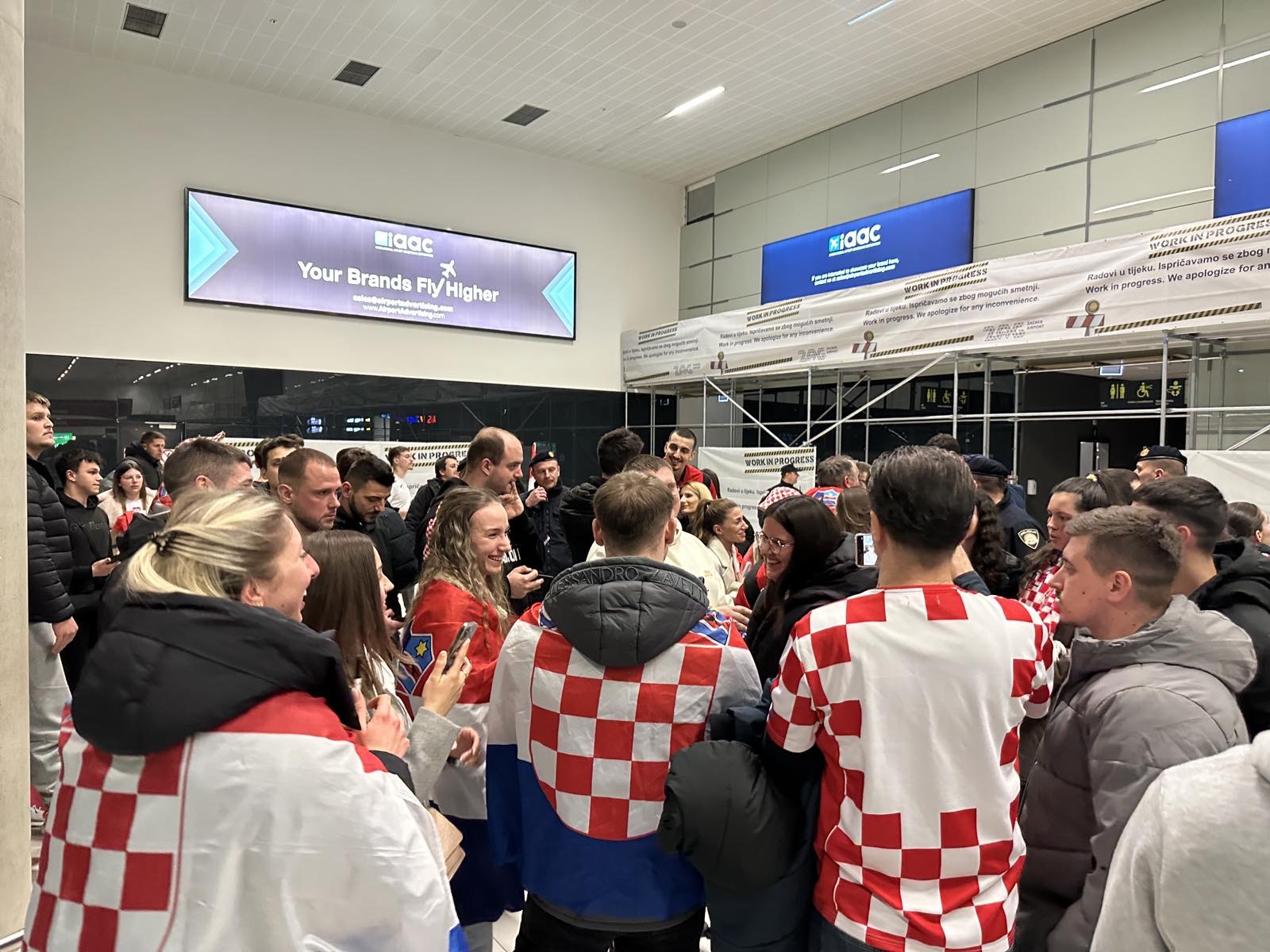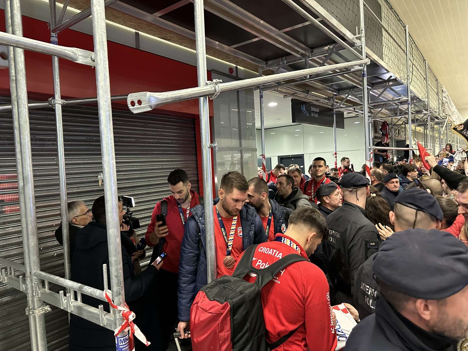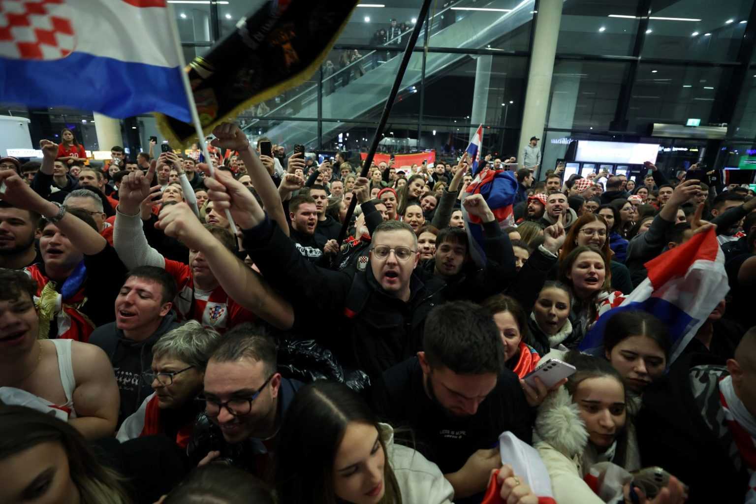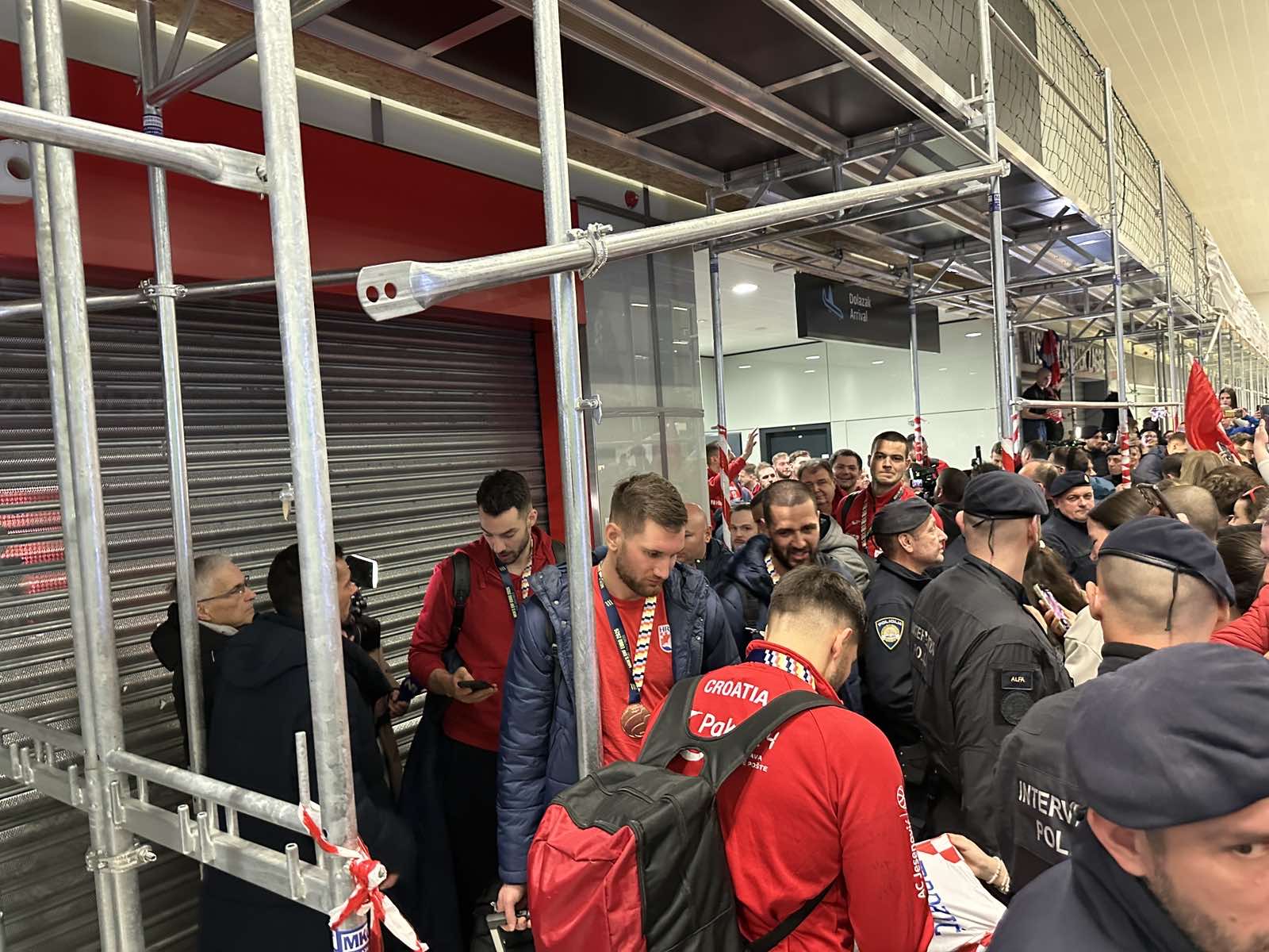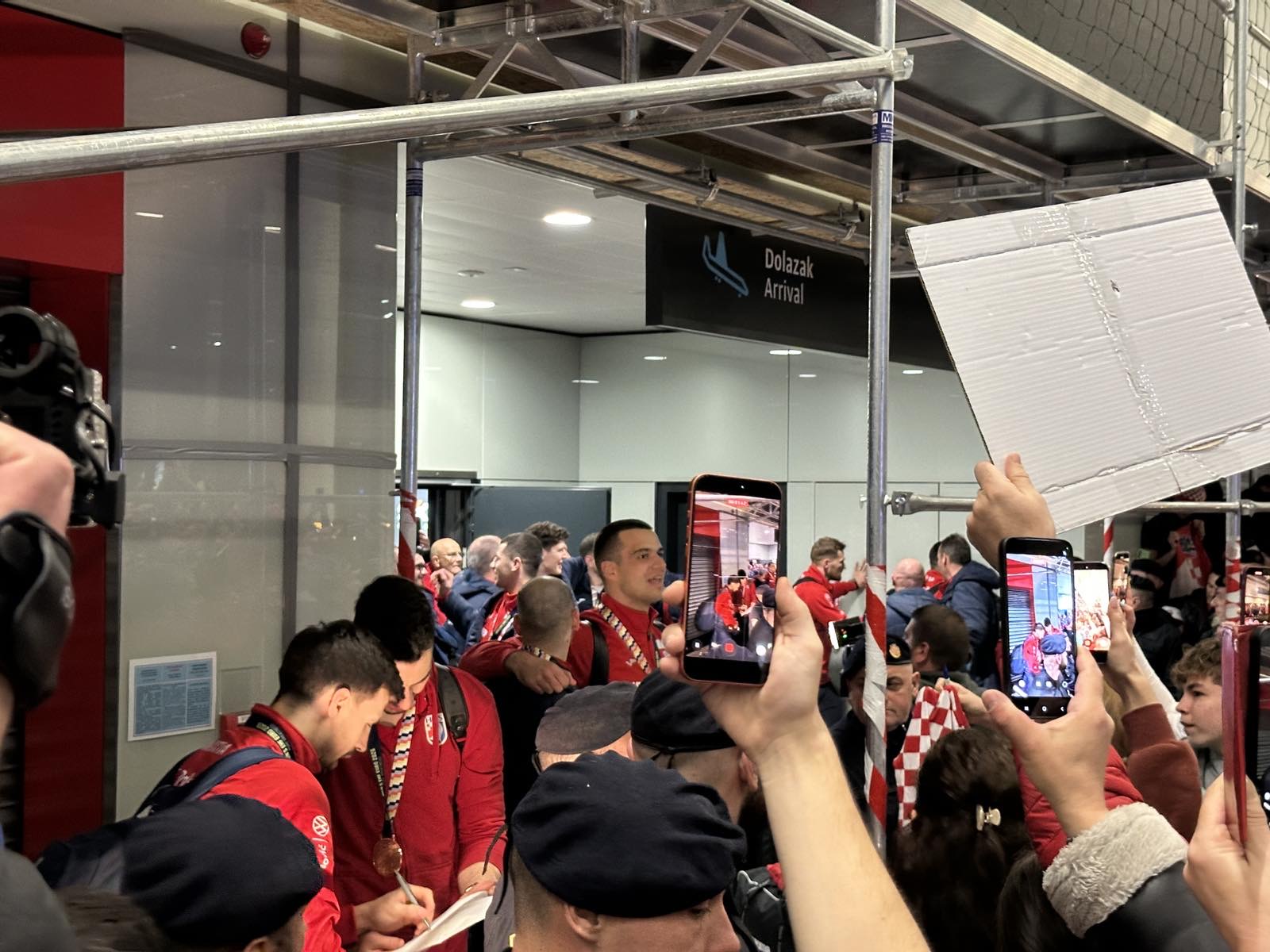 Reprezentacija je iz Danske sletjela iza 3:00 sata ujutro, a stotine navijača opremljenih zastavama i dresovima priredilo je doček za pamćenje. Prostorom su odjekivali hitovi Marka Perkovića Thompsona, Prljavog kazališta i Jure Stublića, dok su igrači dočekani ovacijama uz pjesmu „Ako ne znaš šta je bilo“.