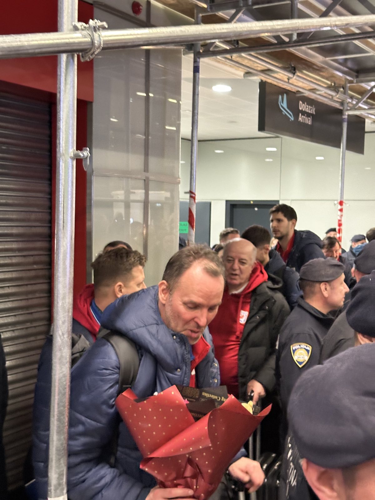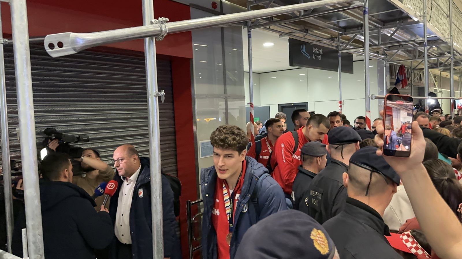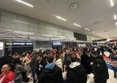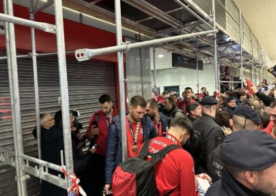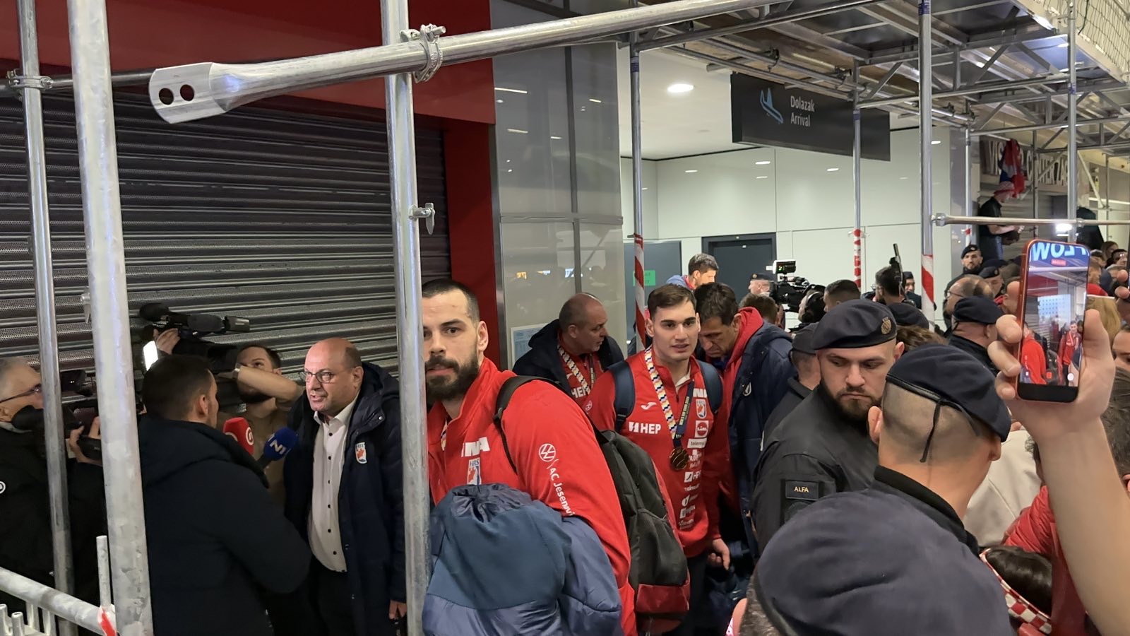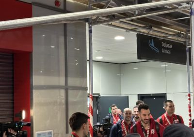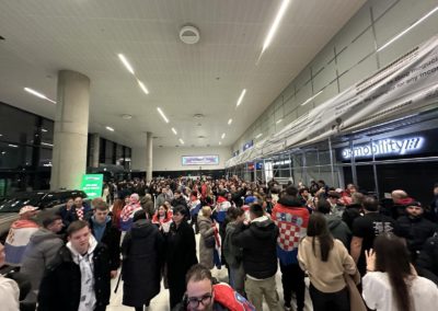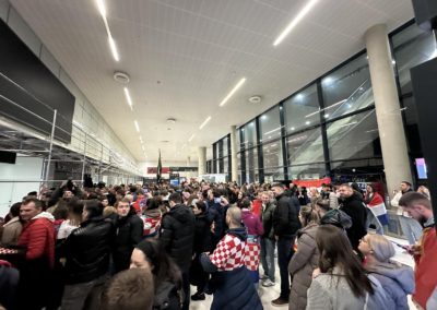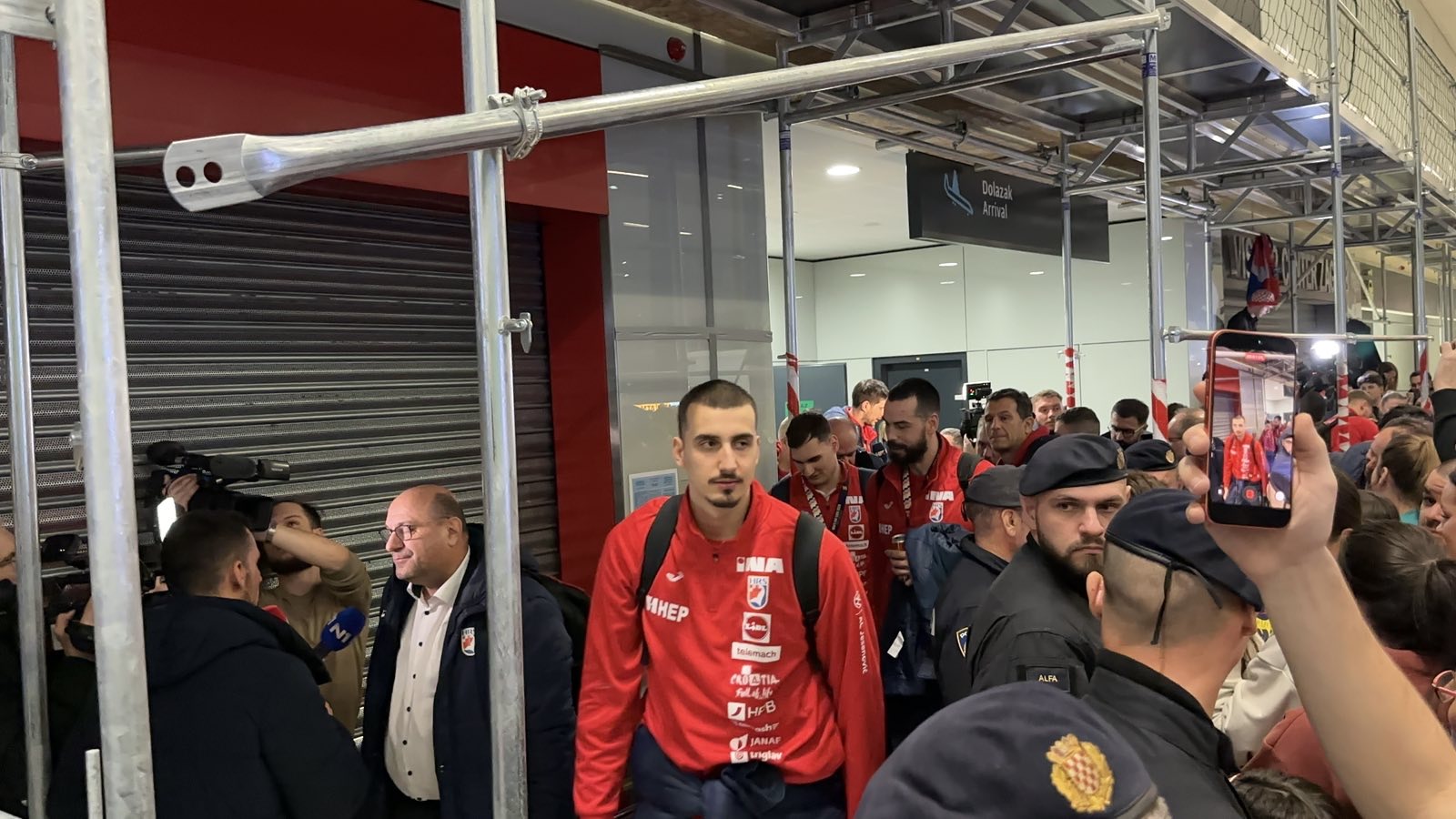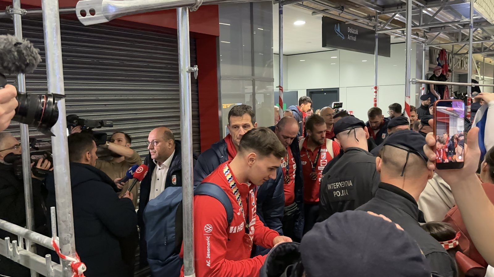 Reprezentacija je iz Danske sletjela iza 3:00 sata ujutro, a stotine navijača opremljenih zastavama i dresovima priredilo je doček za pamćenje. Prostorom su odjekivali hitovi Marka Perkovića Thompsona, Prljavog kazališta i Jure Stublića, dok su igrači dočekani ovacijama uz pjesmu „Ako ne znaš šta je bilo“.