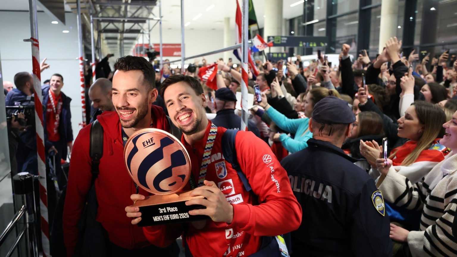 Hrvatski rukometni heroji, osvajači europske bronce, vratili su se noćas u domovinu gdje ih je, unatoč otkazivanju službenog programa na glavnom trgu, u Zračnoj luci Franjo Tuđman dočekalo više stotina vjernih navijača. Iako je termin bio neuobičajen, atmosfera je bila ispunjena emocijama i domoljubnim pjesmama, čime su građani jasno poručili što misle o uspjehu svojih reprezentativaca.