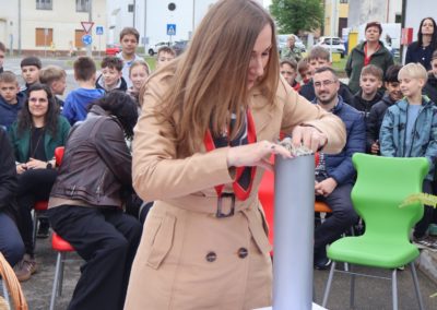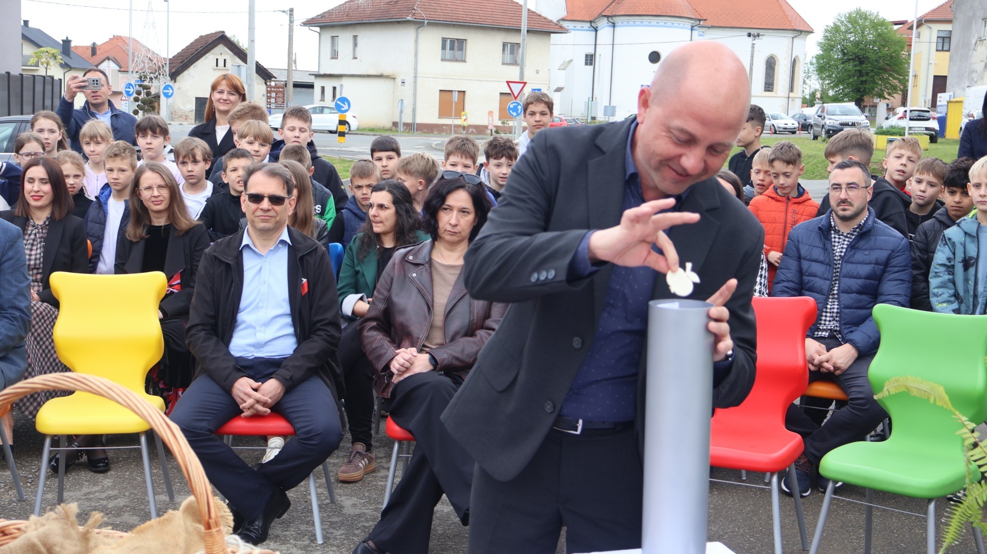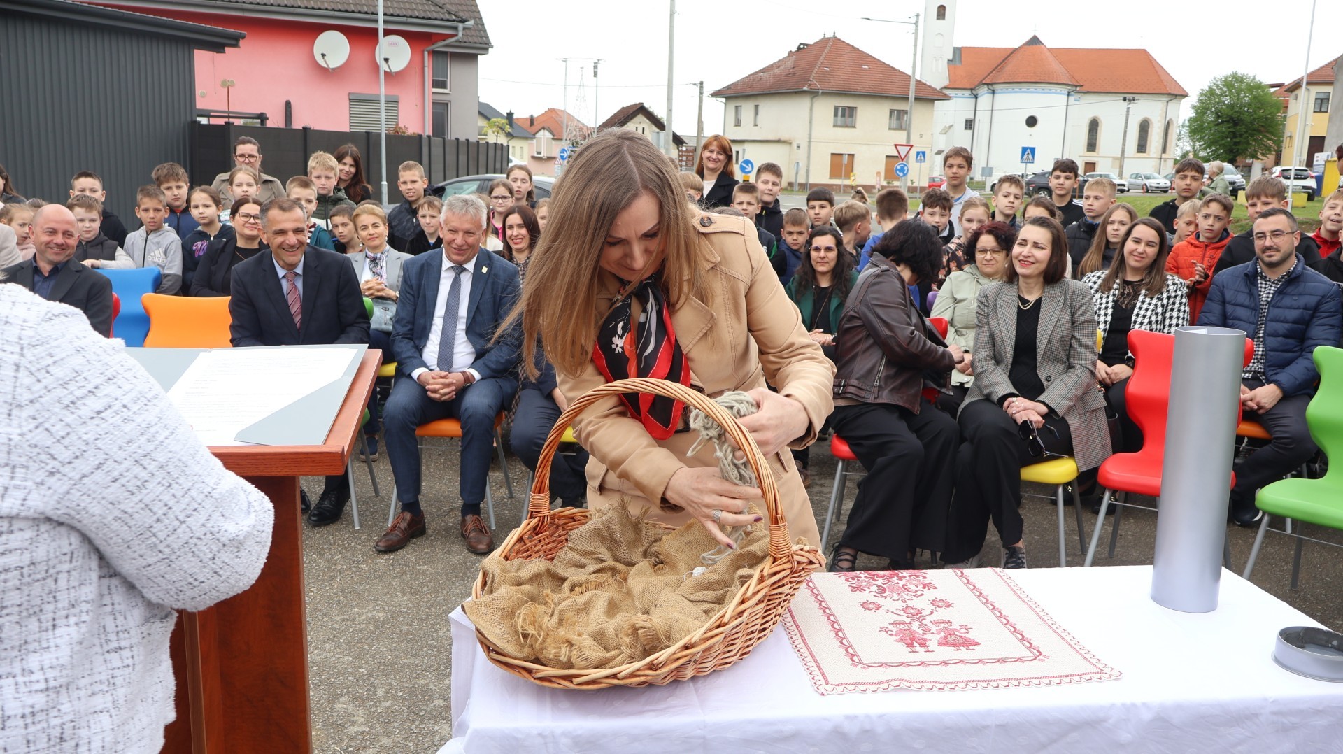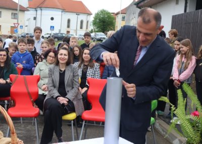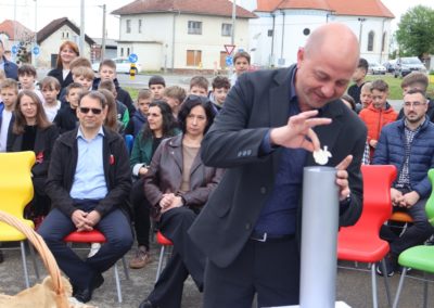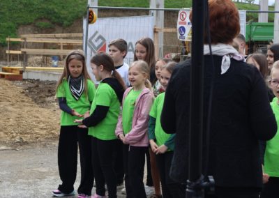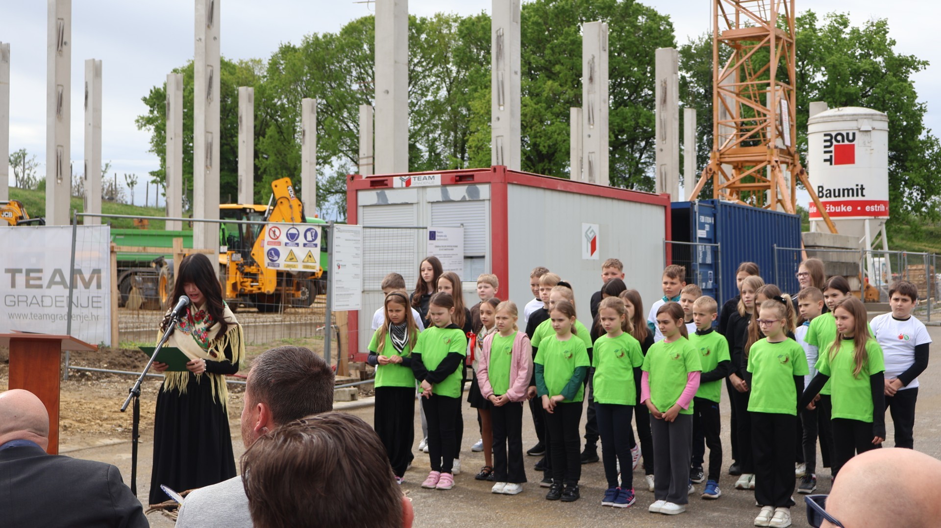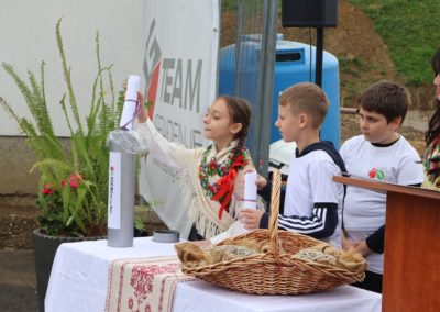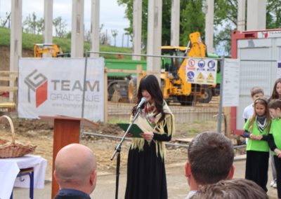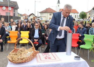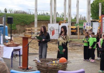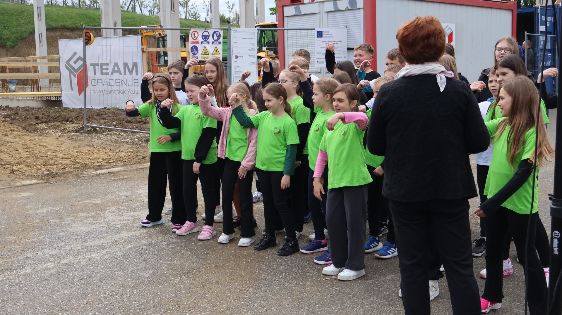 Svečanost su svojim nastupima uveličale učenice Nikol Kutnjak, koja je otpjevala pjesmu “Dej mi Bože”, te Chriztel Renae Aceveda s izvedbom pjesme “Rožica sam bila”, unijevši poseban umjetnički značaj u ovaj važan dan. Nakon službenog dijela programa, učenici su pažljivo položili svoje radove u kapsulu, a ravnateljica je pozvala načelnika i župana da u nju dodaju predmete od posebnog značaja za Općinu i Županiju. Uzbuđeni uzvanici i djeca potom su se uputili prema samom gradilištu, gdje je vremenska kapsula trajno položena na predviđenu lokaciju unutar konstrukcije nove dvorane.