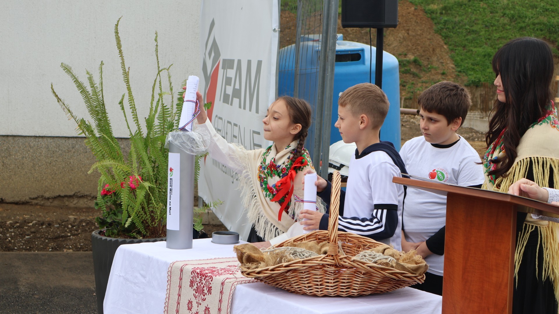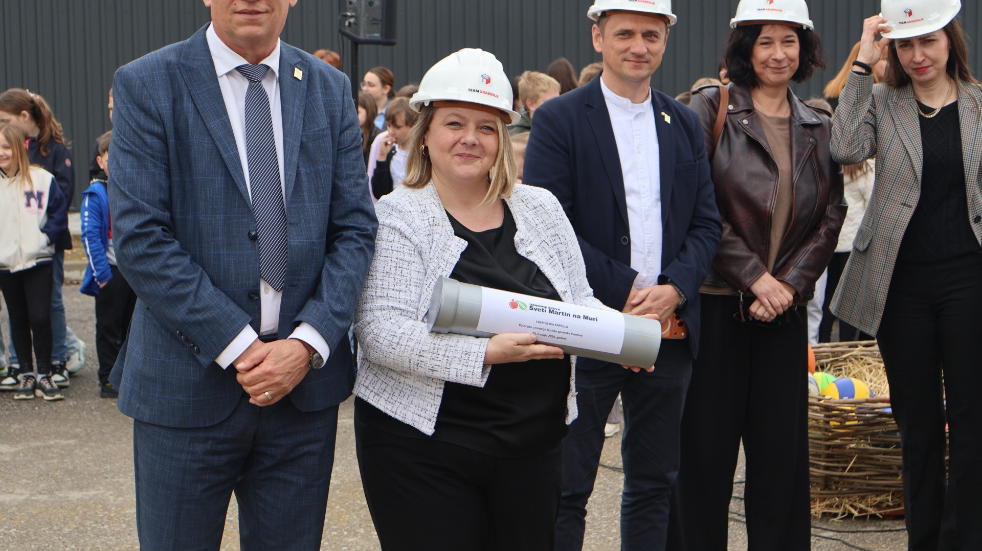 U Općini Sveti Martin na Muri danas je obilježen povijesni trenutak za lokalno školstvo i zajednicu. Na gradilištu nove školske sportske dvorane Osnovne škole Sveti Martin na Muri svečano je položena vremenska kapsula, čime je simbolično obilježen napredak radova na projektu koji su generacije mještana čekale desetljećima. Svečanosti su prisustvovali župan Međimurske županije Matija Posavec, načelnik Općine Sveti Martin na Muri Martin Srša, pročelnica za obrazovanje, kulturu i sport Nives Kolarić Strah, predsjednik Općinskog vijeća Ivica Kutnjak, ravnateljica REDEA-e Sandra Polanec Marinović sa suradnicima, predstavnici izvođača radova iz tvrtke Tim Građenje, ravnateljica Centra dr. Rudolf Steiner Dijana Posavec te brojni drugi uzvanici.