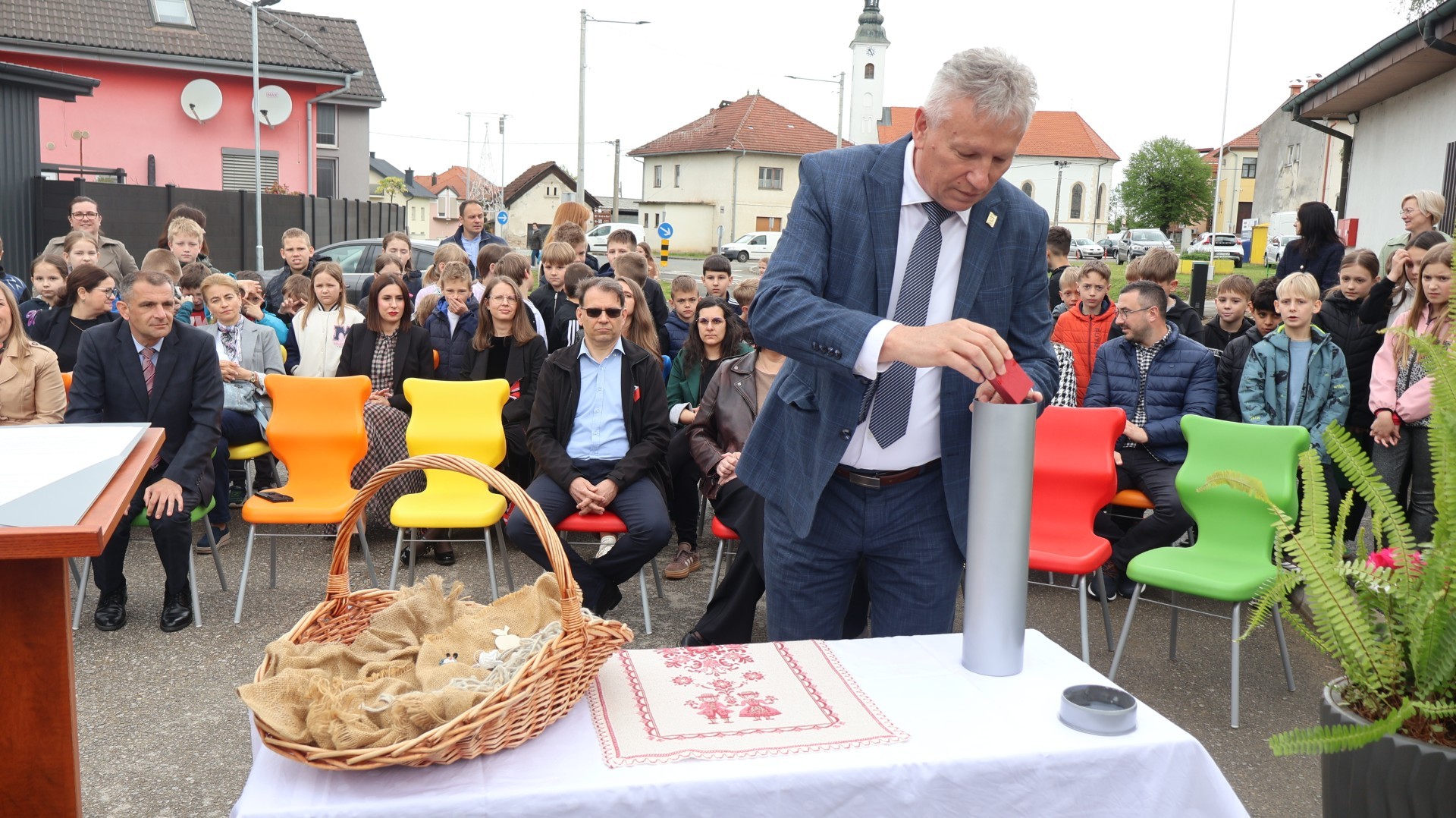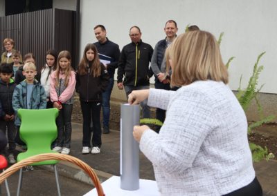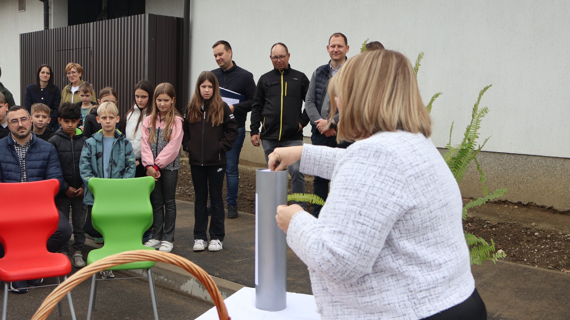 Iako je uobičajeno polagati kamen temeljac na početku gradnje, ravnateljica škole Petra Novinščak istaknula je kako današnji čin ima drugačiju simboliku. Budući da su radovi na dvorani, započeti u siječnju, već u poodmakloj fazi, odlučeno je da se u temelje ugradi vremenska kapsula ispunjena porukama i crtežima svih učenika. U tim su pismima djeca zabilježila svoje želje, snove i nade za budućnost, ostavljajući trajni trag generacijama koje dolaze. Ravnateljica se u emotivnom govoru prisjetila 1987. godine, kada je škola izgrađena, te činjenice da škola od tada nikada nije imala vlastitu dvoranu.
