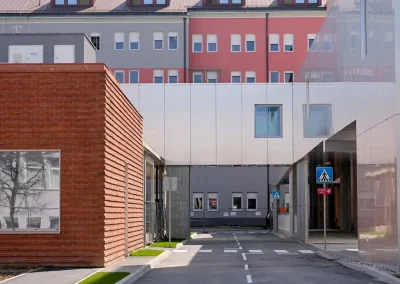• Povezanost: Topli hodnici spajaju novu zgradu s kirurgijom, neurologijom, internom, OHBP-om, ginekologijom i dnevnom bolnicom.