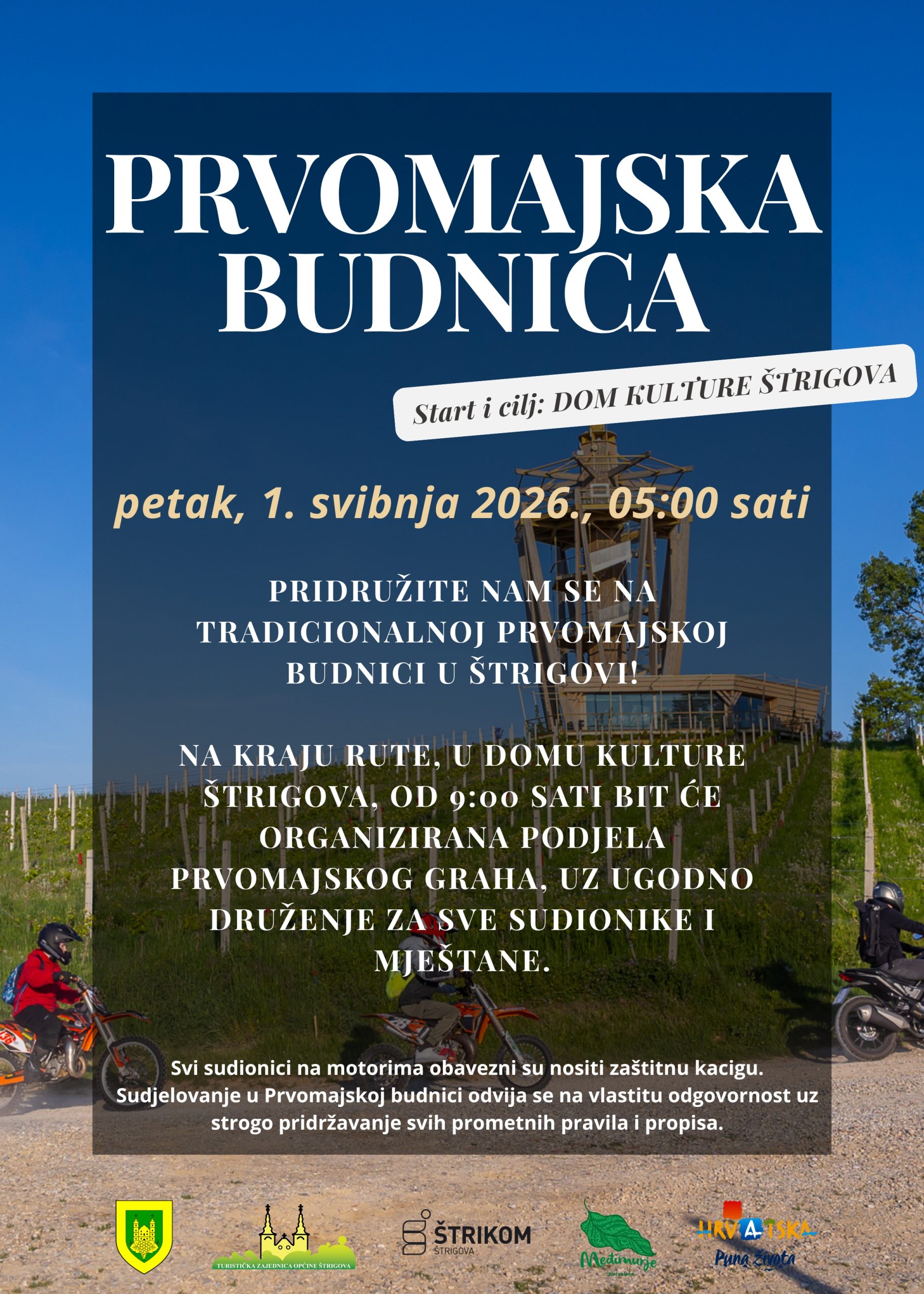 Turistička zajednica i Općina Štrigova pozivaju sve ljude dobre volje da se pridruže ovoj veseloj koloni, bilo na biciklima, motorima ili u automobilima. Prvomajska budnica u Štrigovi nije samo proslava praznika, već simbol zajedništva i očuvanja lokalne tradicije u jednom od najljepših kutaka Međimurja.