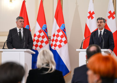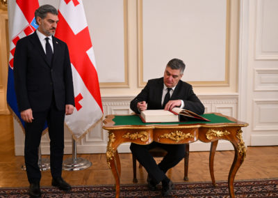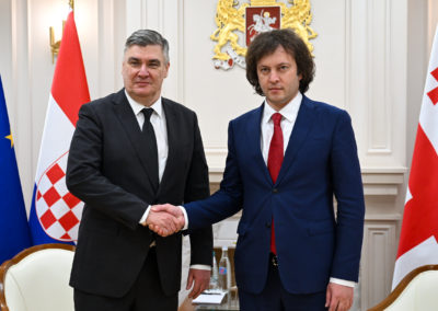 Tijekom dana, predsjednik Milanović sastao se i s premijerom Iraklijem Kobakhidzeom, a u nastavku posjeta susrest će se s predsjednikom Parlamenta te položiti vijenac kod Spomenika odlikovanim herojima domovine.