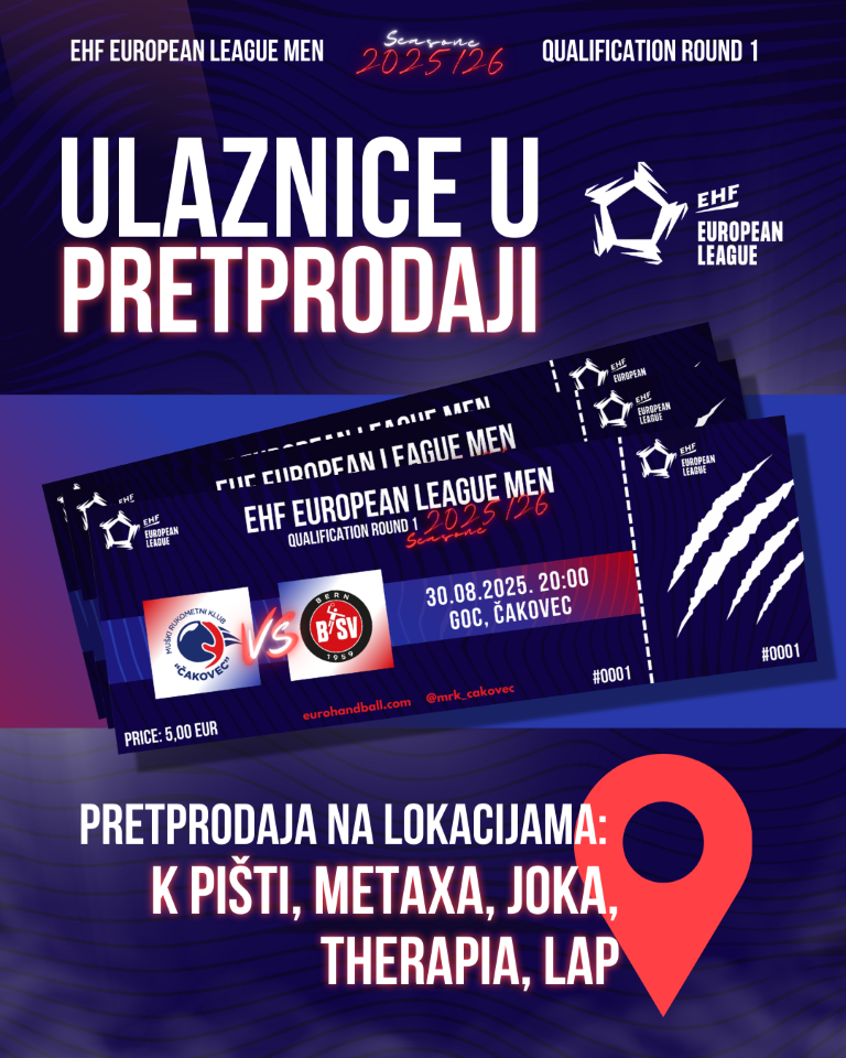 Rukometni spektakl stiže u Čakovec! MRK Čakovec u subotu, 30. kolovoza 2025., dočekuje švicarsku ekipu BSV Bern u prvoj utakmici kvalifikacija za EHF Europsku ligu. Utakmica se igra u dvorani Graditeljske škole (GOC) s početkom u 20:00 sati.